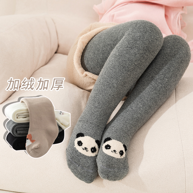 宝宝连裤袜打底袜足迹熊卡通秋冬