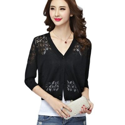 v领短款外搭开衫镂空针织空调衫毛衣外套小披肩夏新款女薄