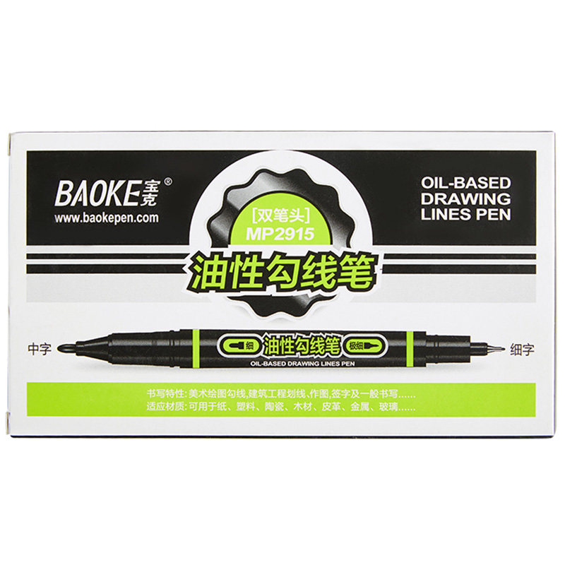 宝克MP2915记号笔油漆笔儿童绘画学生勾线笔黑双头彩色油性笔防水不脱色
