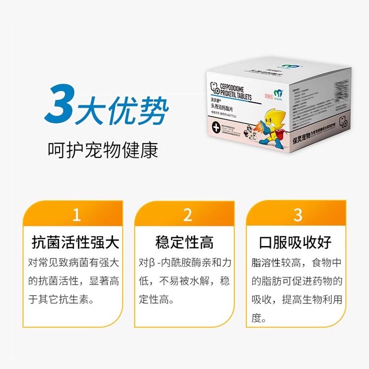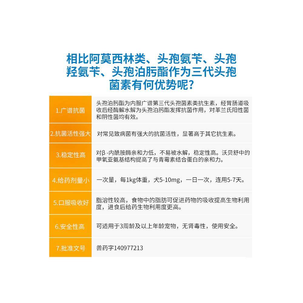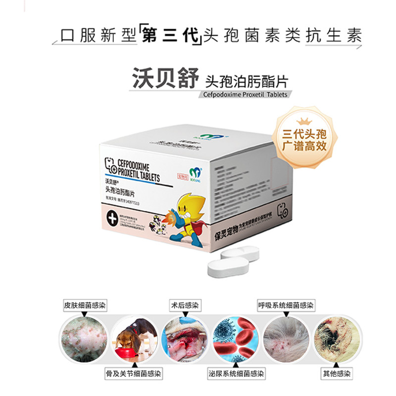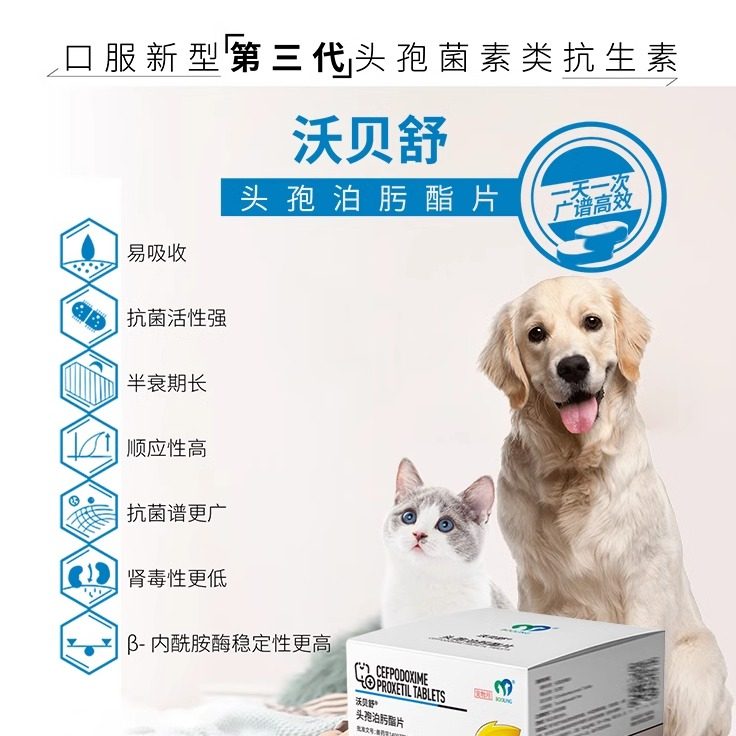 保灵沃贝舒头孢泊肟酯片猫狗宠物消炎药感冒鼻支细菌皮肤泌尿炎症
