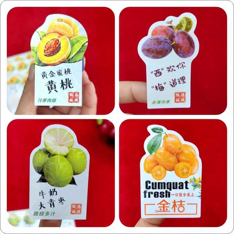 榴莲山竹芒果杨梅西梅大荔冰糖冬枣通用水果不干胶标签贴纸定制