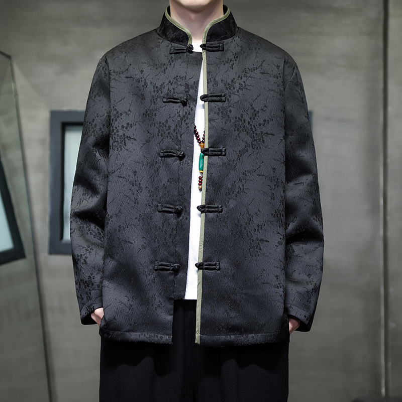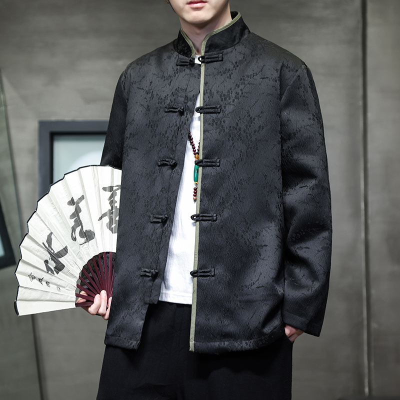 新中式唐装男中国风春秋季长袖夹克复古提花汉服大码立领外套男