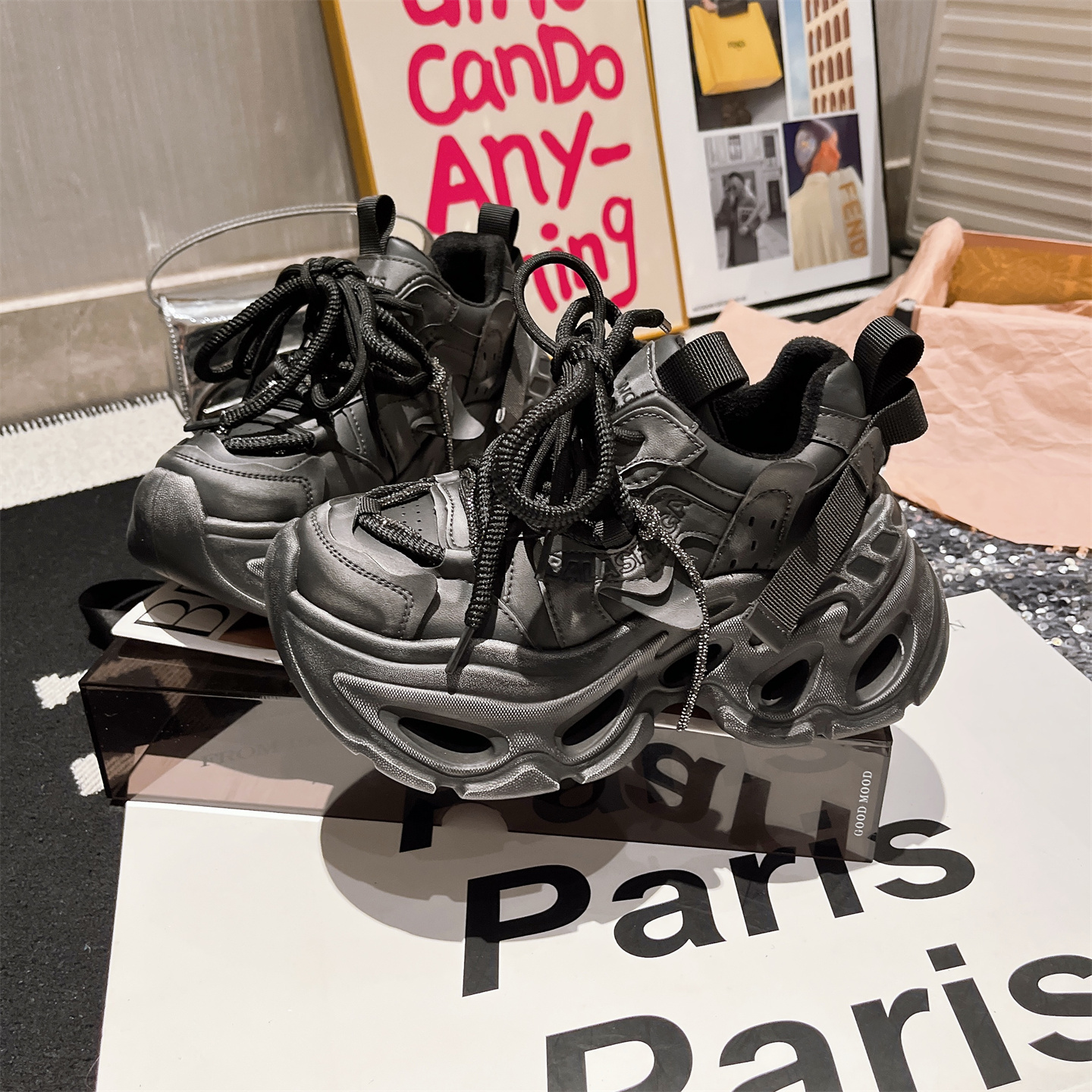 欧货真皮系带厚底松糕水钻做旧擦色小个子老爹鞋运动鞋小白鞋女鞋