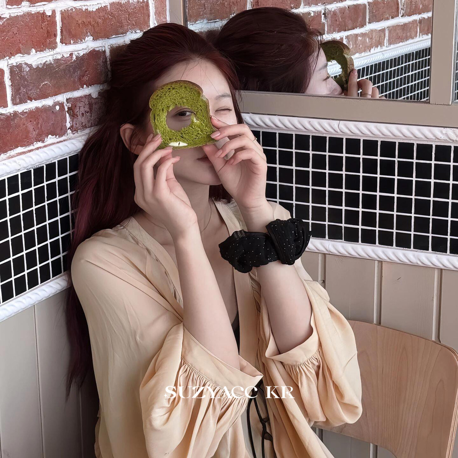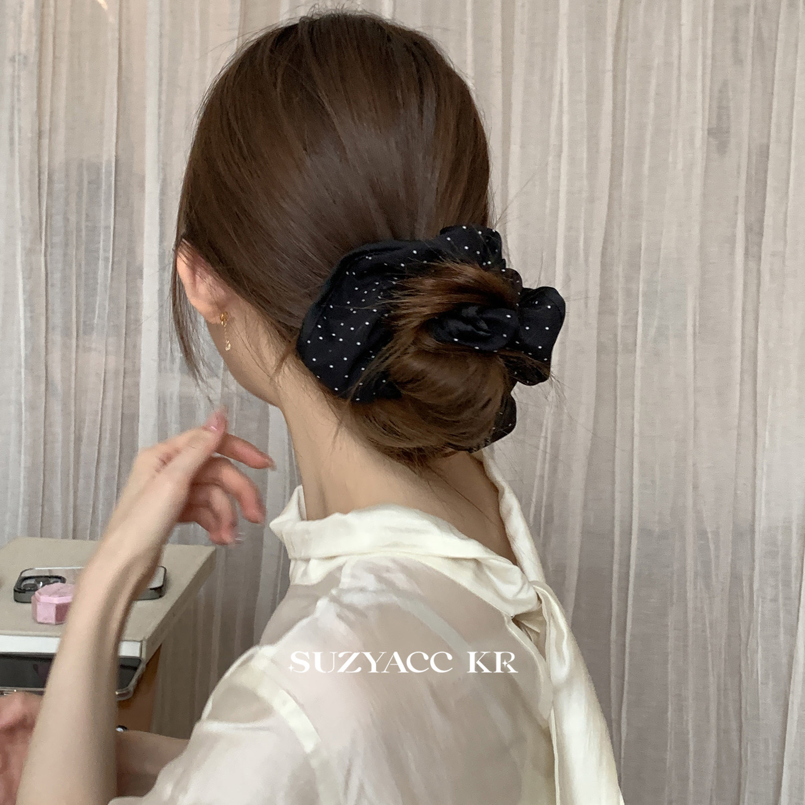 suzyacc kr赵露思同款黑色波点大肠圈复古高级感头花低马尾发圈女