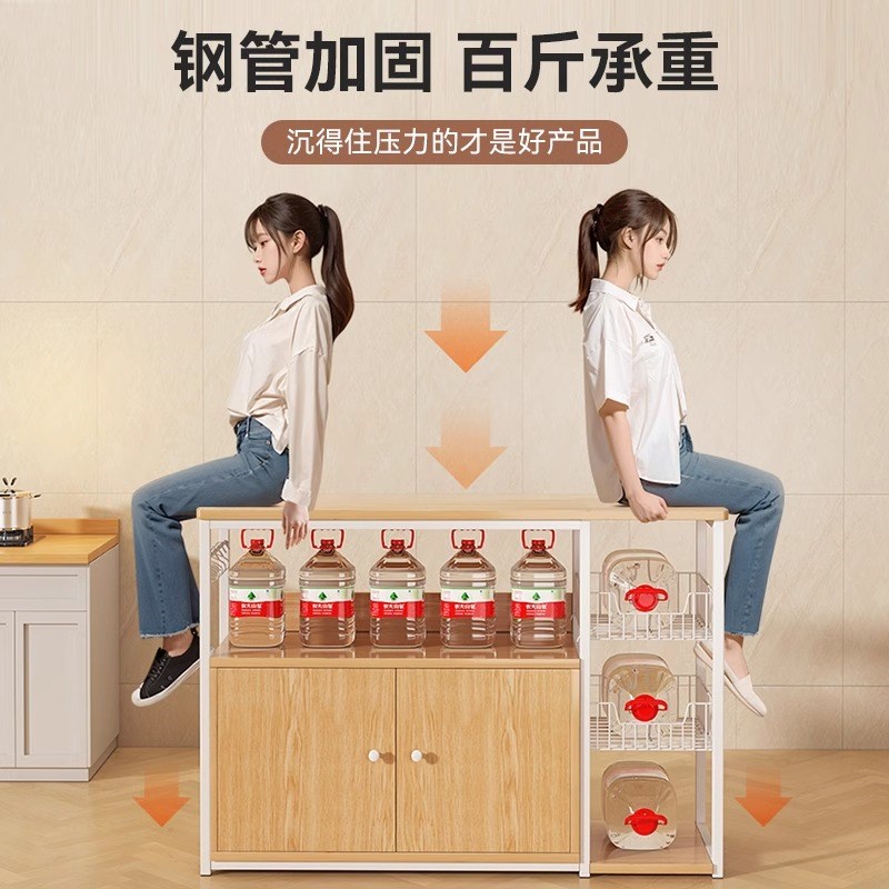 厨房多功能置物架落地多层微波炉锅具收纳橱柜家用靠墙柜子储物柜