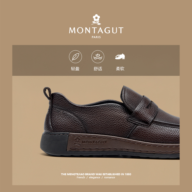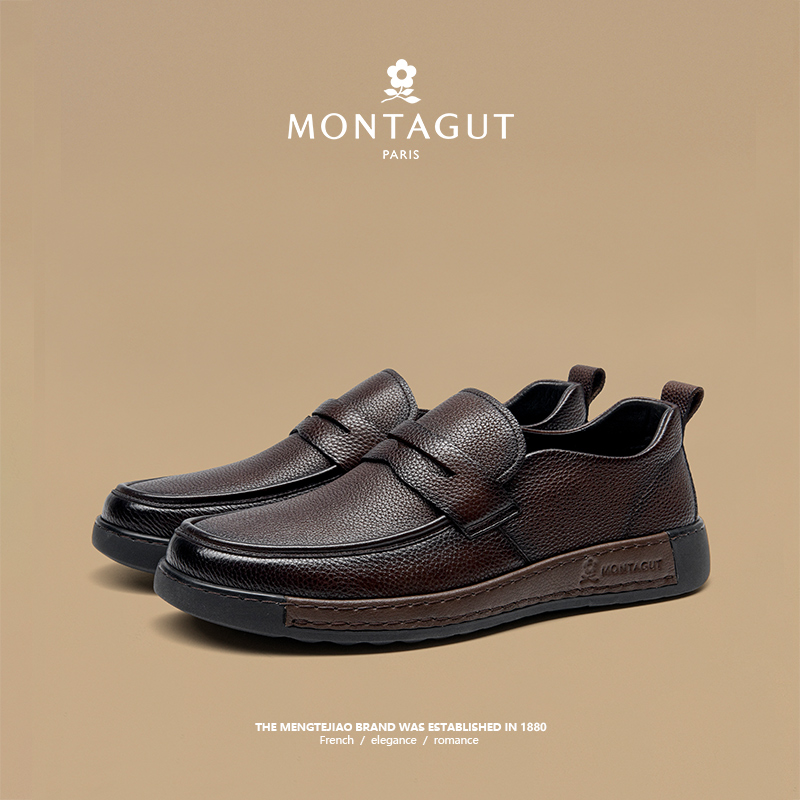 梦特娇官方旗舰真皮一脚蹬皮鞋男