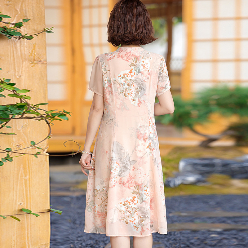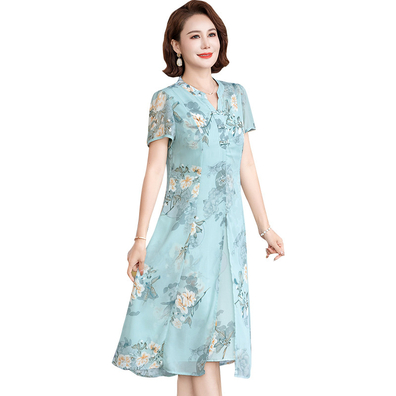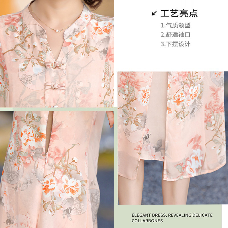 妈妈夏装连衣裙2025新款洋气中式国风旗袍中老年女装夏季雪纺裙子