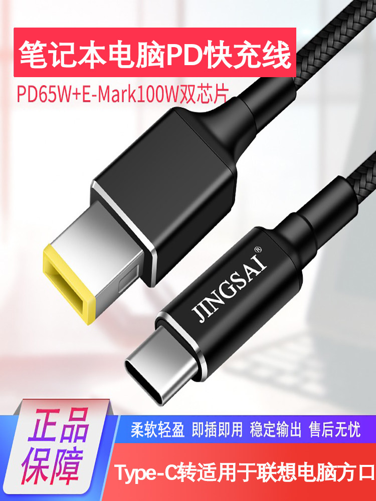 适用于联想方口转接头Typec转笔记本电脑充电器圆口转换线Thinkpad方形电源PD快充100W诱骗器戴尔USB-C
