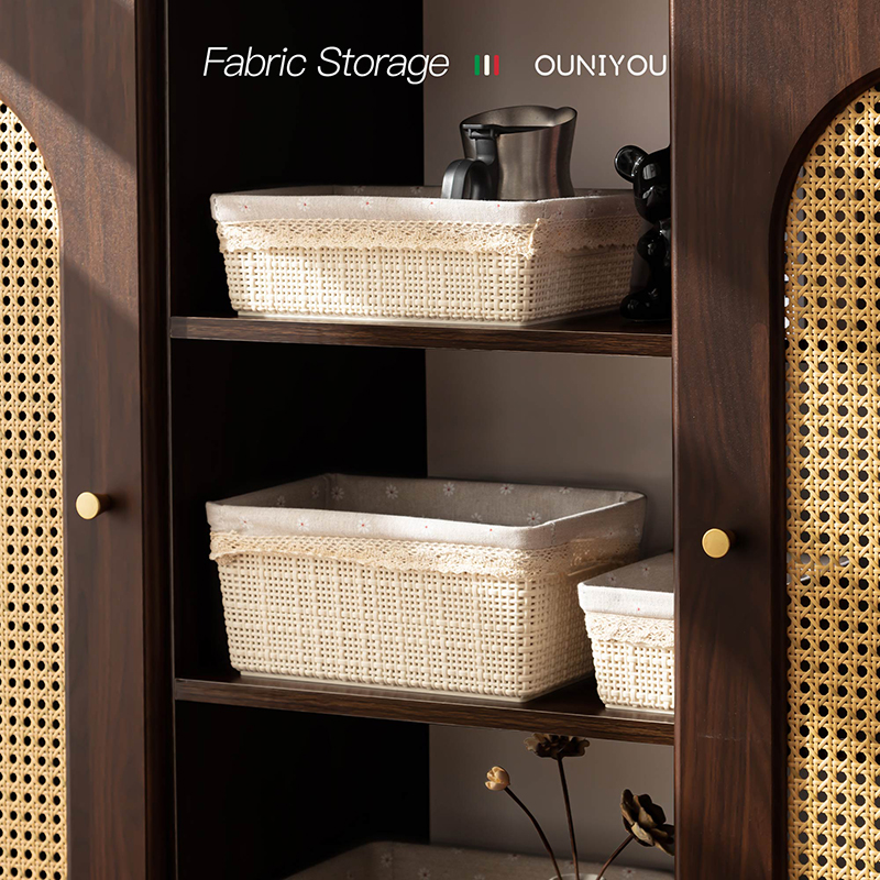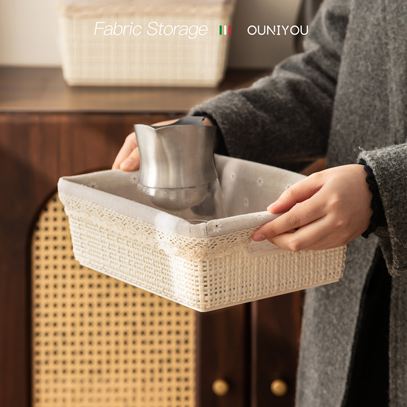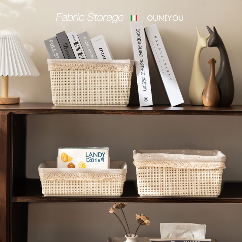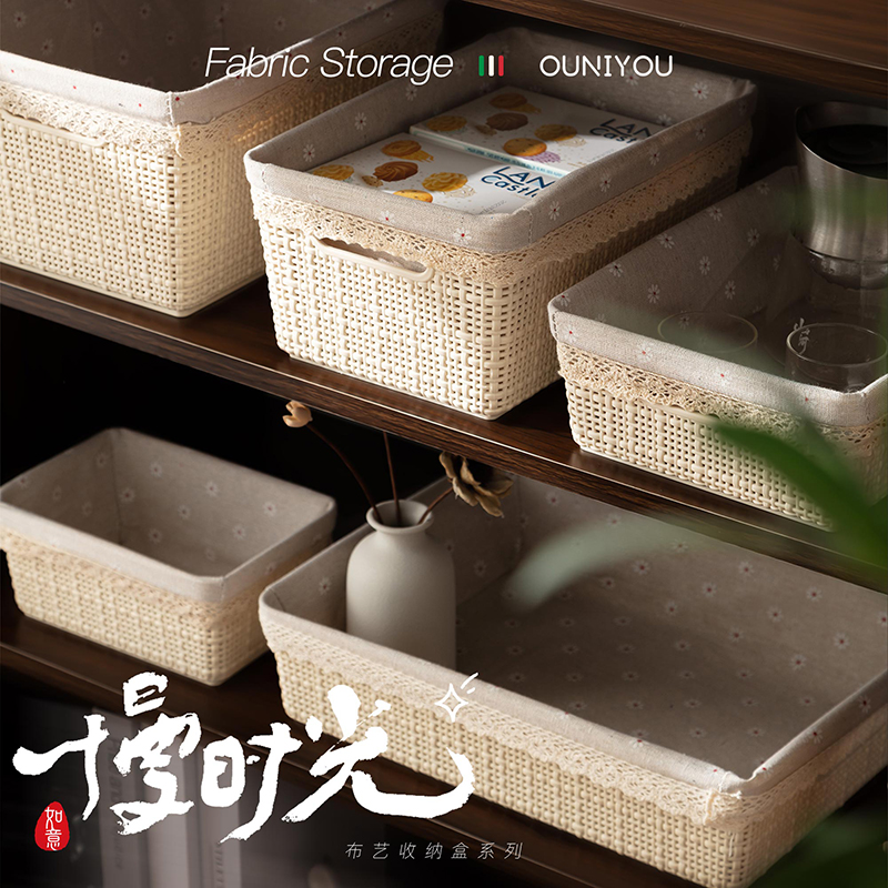 仿藤编零食桌面收纳盒杂物加厚玩具收纳筐化妆品收纳箱储物盒蓝色