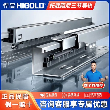 悍高HIGOLD抽屉托底轨道阻尼缓冲反弹三节橱柜滑轨静音滑道导轨