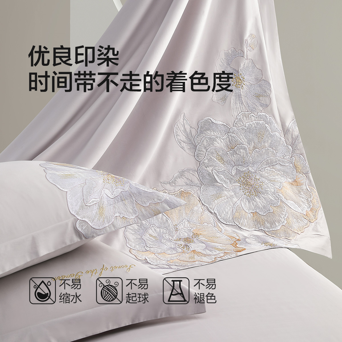 水星家纺贡缎四件套60支长绒棉抑菌套件全棉贡缎轻奢绣花被套床单