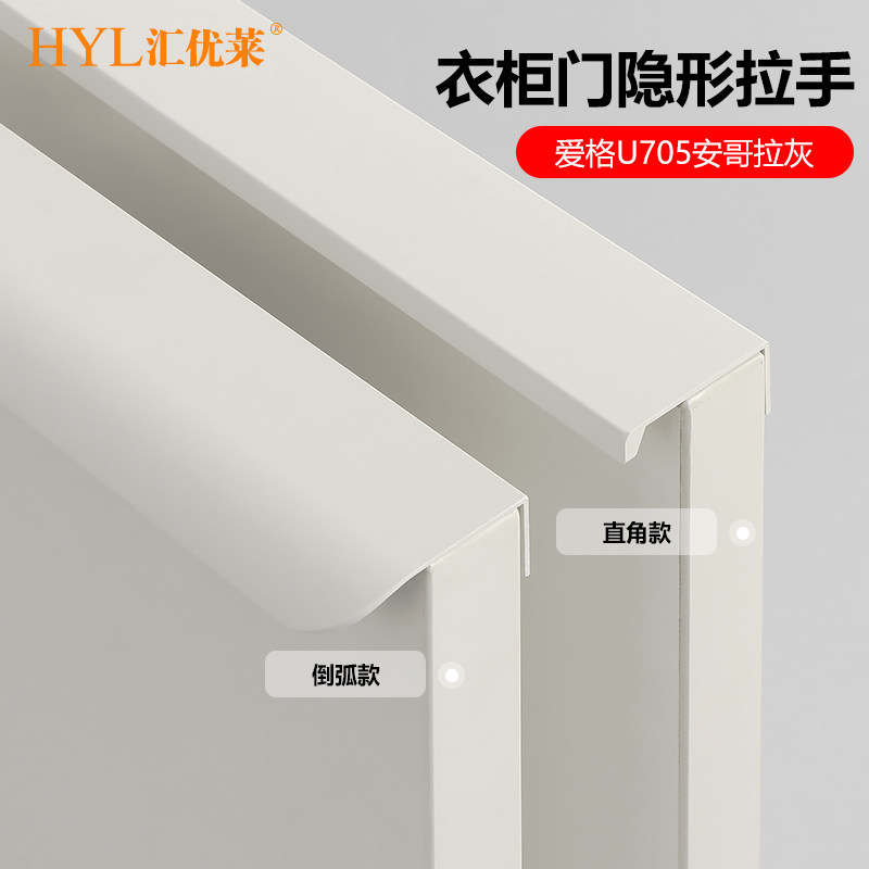 爱格u705羊绒灰浅灰衣柜隐形拉手米白柜门厨柜抽屉超薄白色门把手