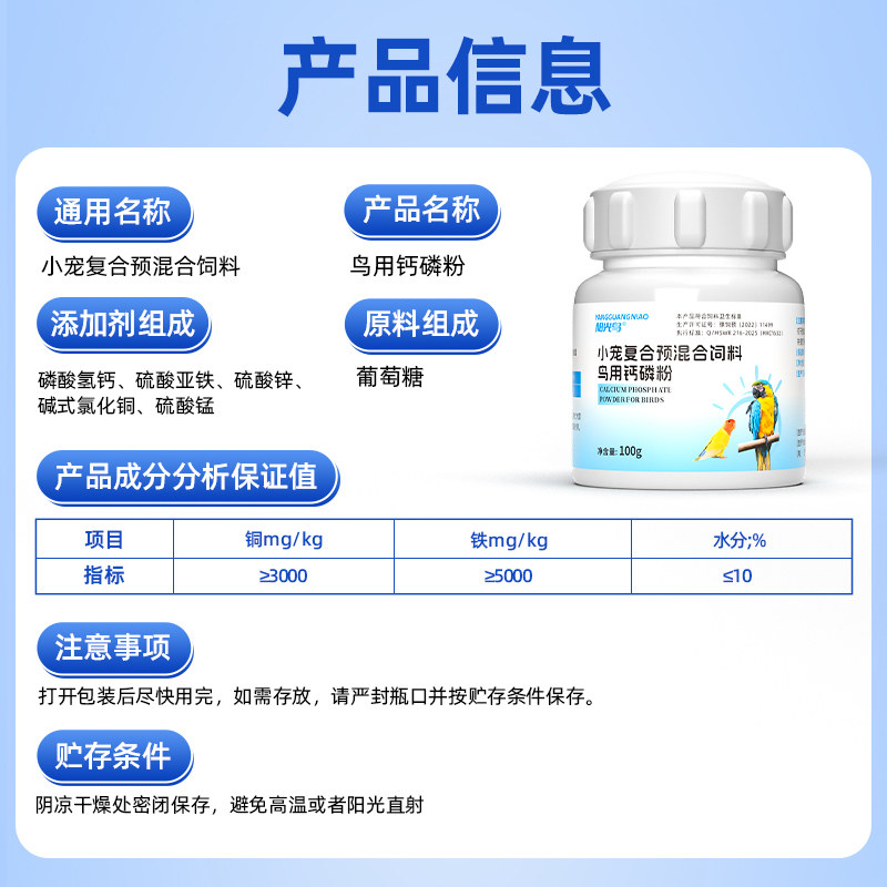 鸟用鹦鹉钙磷粉健骨补钙玄凤虎皮牡丹水溶性钙幼鸟繁殖期营养品