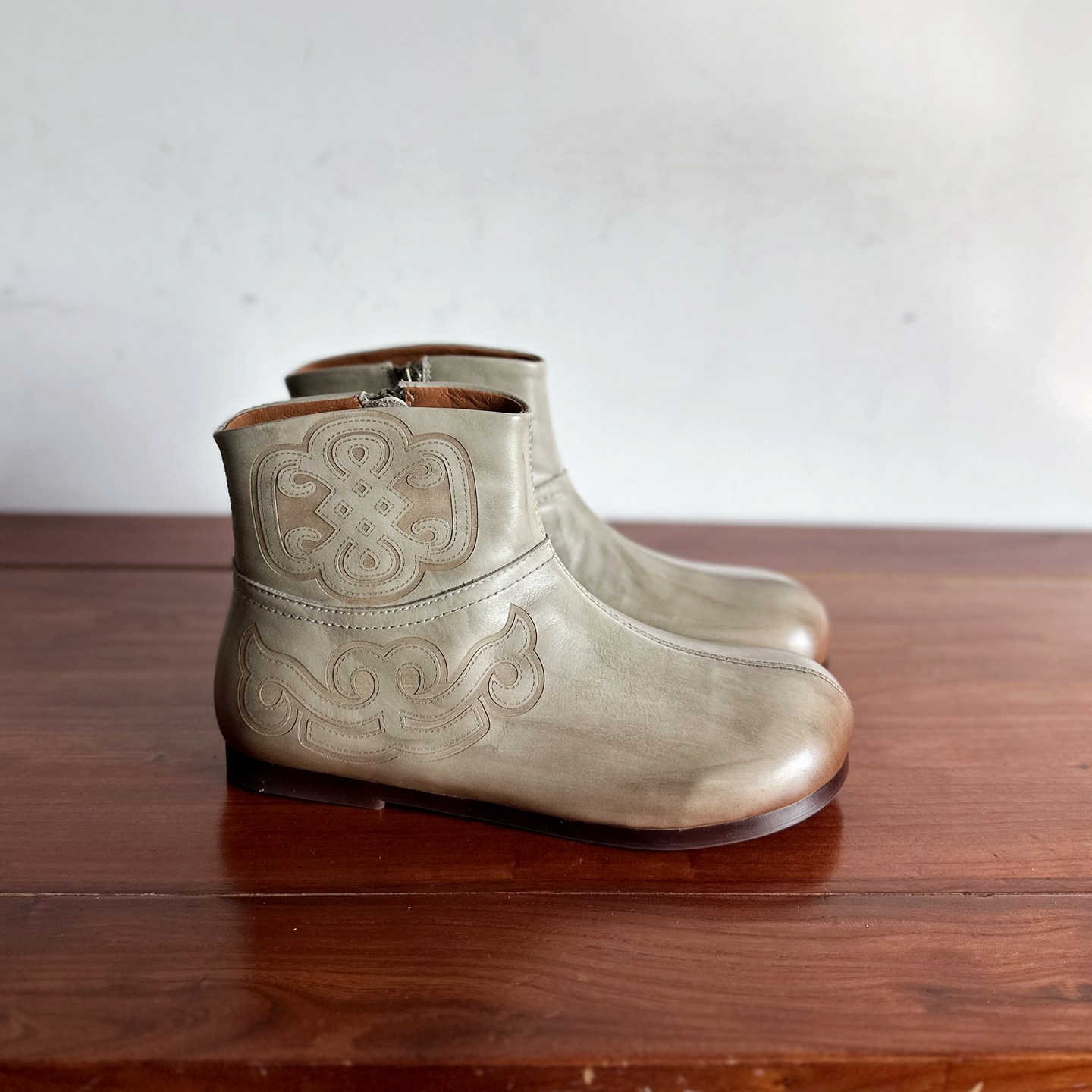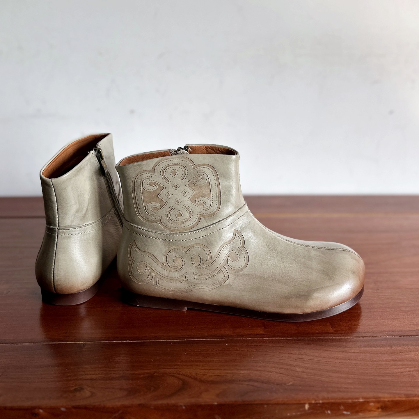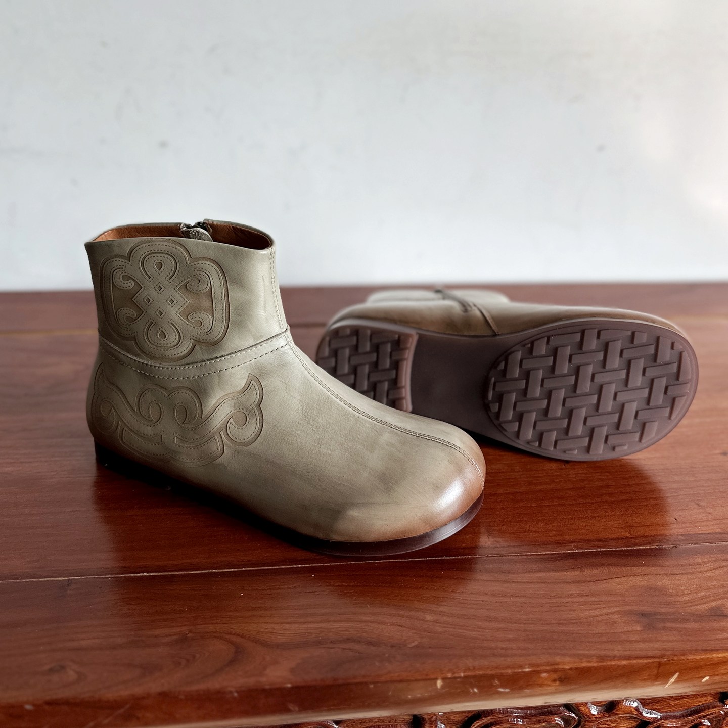 【烁掌柜】新中式设计手工真皮女靴头层牛皮低跟圆头舒适复古短靴