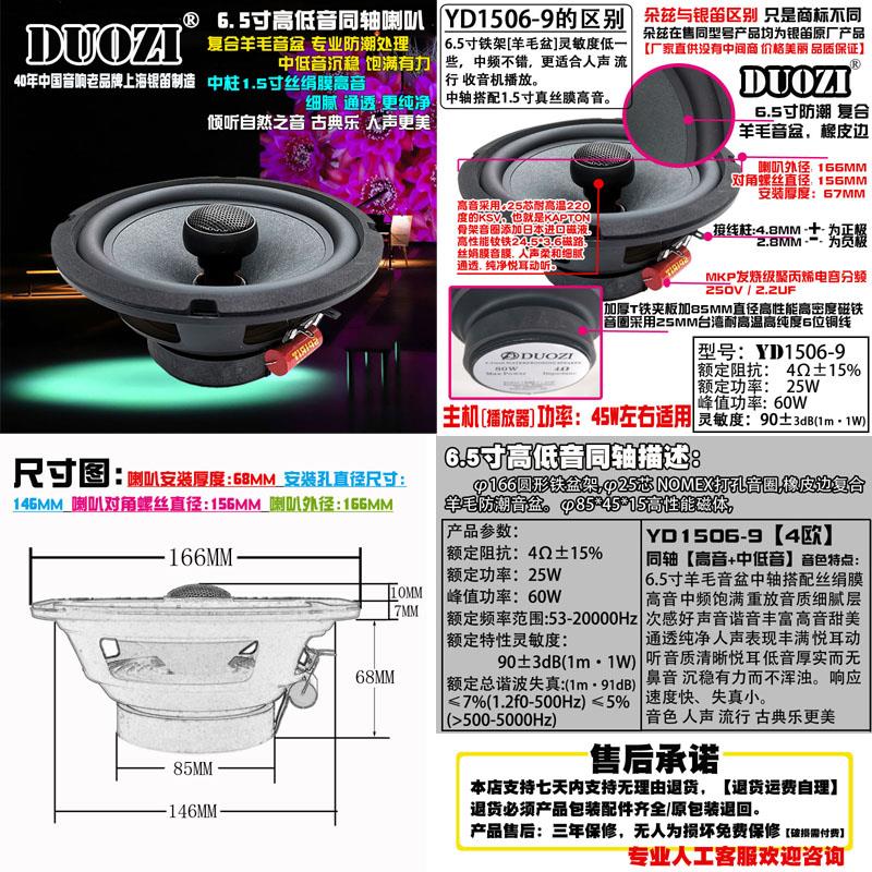 银笛品质汽车音响改装6.5寸全频喇叭丝膜高音+陶瓷羊毛盆低音同轴