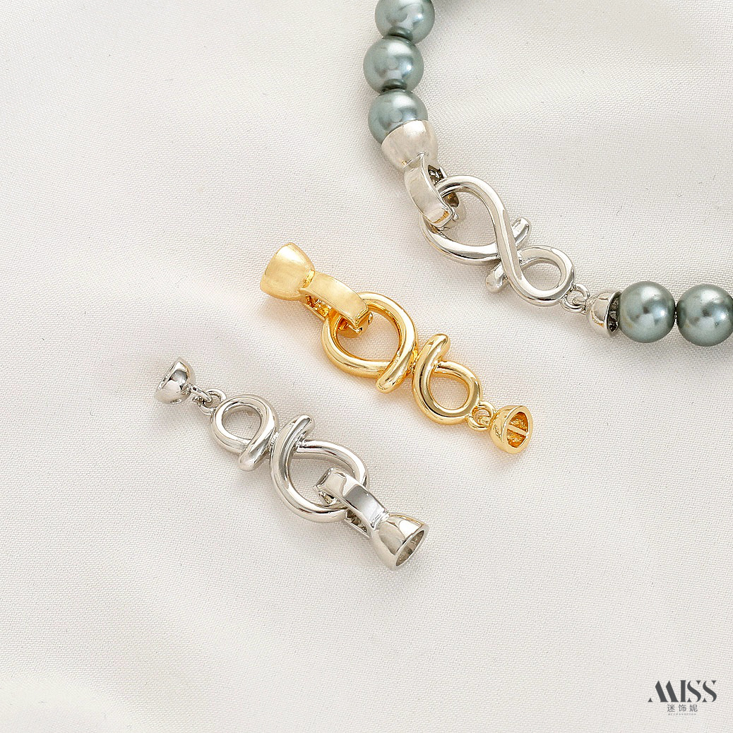 14K包金保色镀18K真金8字音符珍珠扣收尾连接扣头diy手链项链配件