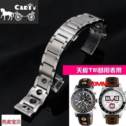 适配原厂carty钢表带天梭表带T9120mm实心钢表链prs516赛车