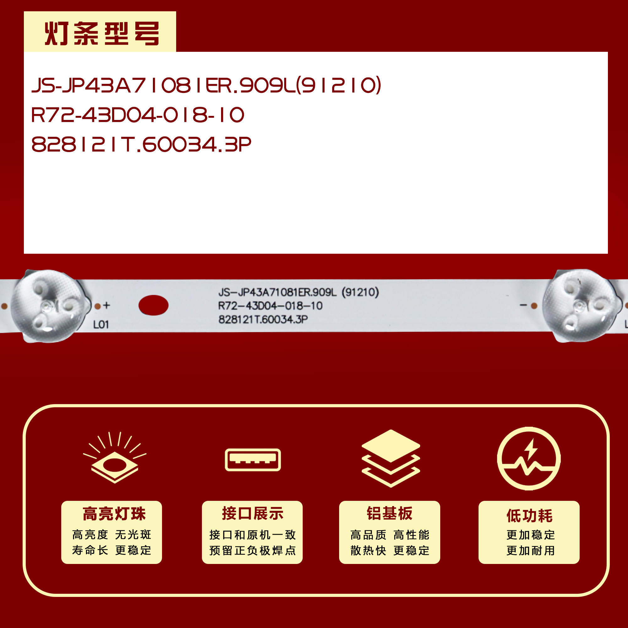 适用乐华S43C灯条JS-JP43A71081ER.909L(91210)灯条R72-43D04-018