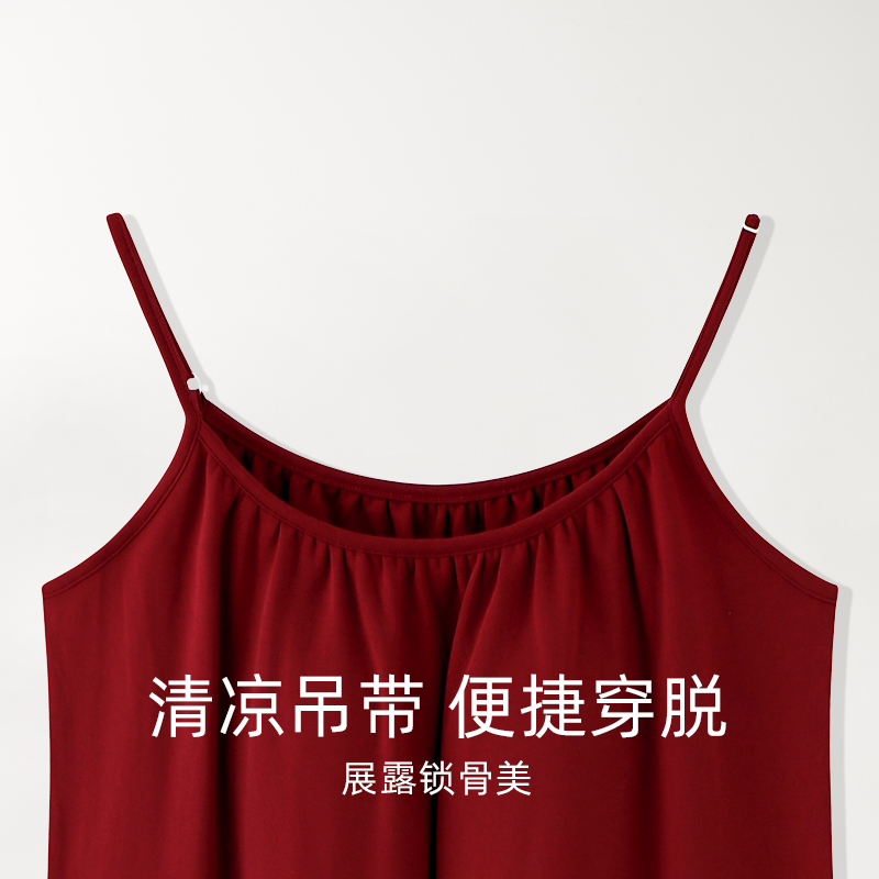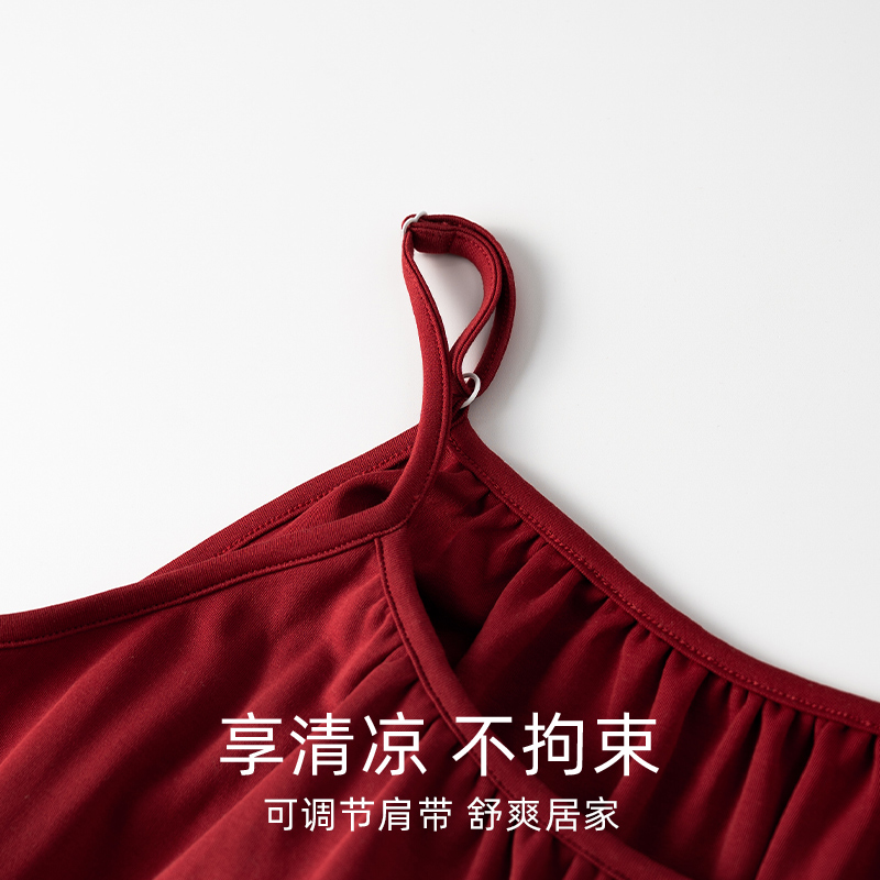 浪莎睡衣女夏季纯棉吊带睡衣带胸垫圆领无袖短裤家居服套装可外穿