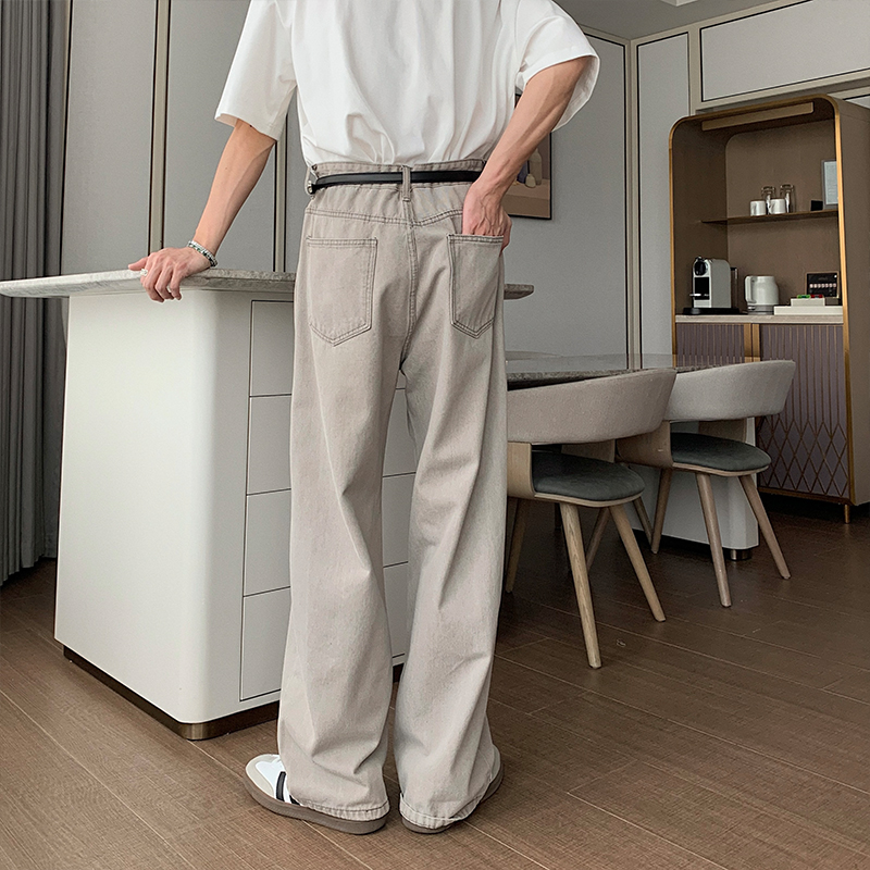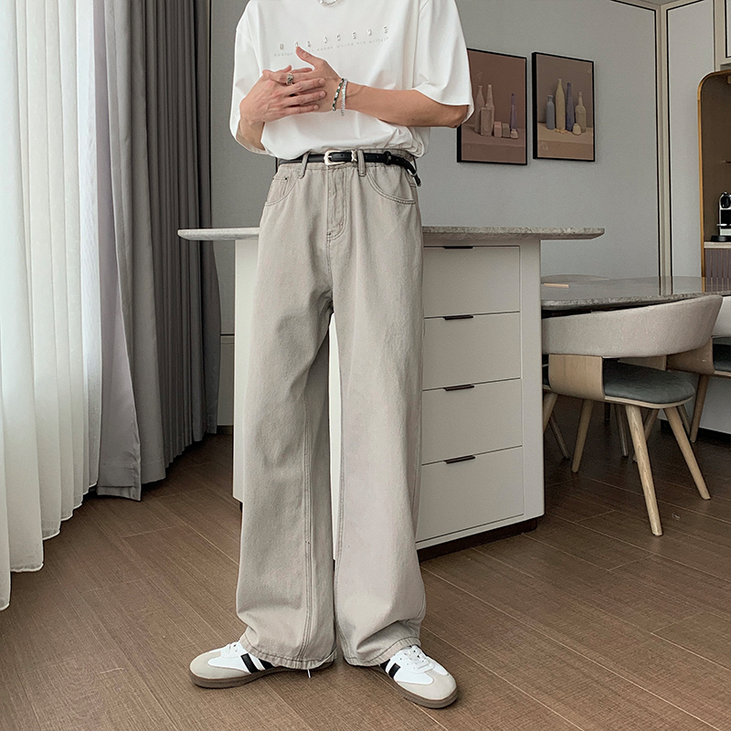 Hualun夏季做旧宽松牛仔裤男款直筒休闲裤子男cleanfit纯棉阔腿裤