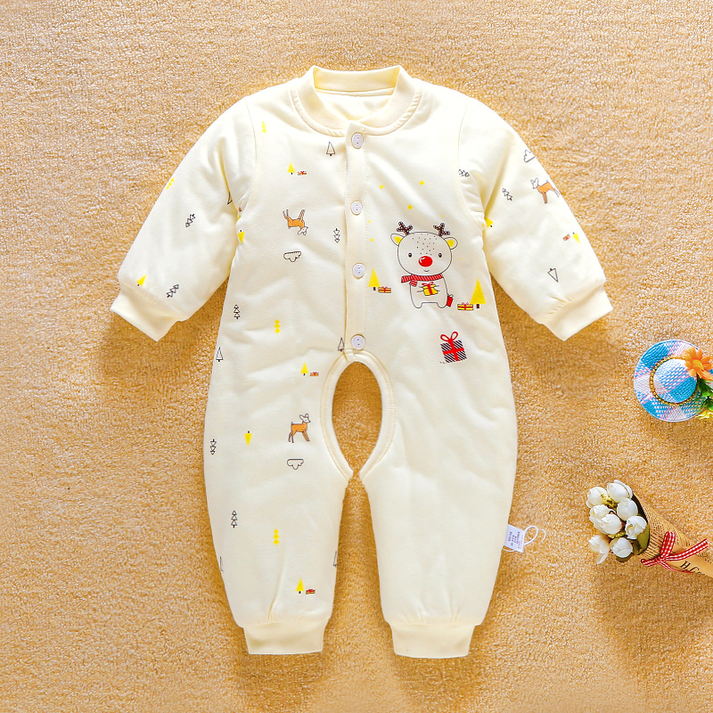 秋冬纯棉加厚新生儿衣服婴儿连体衣爬服薄棉宝宝外出服暖气房哈衣