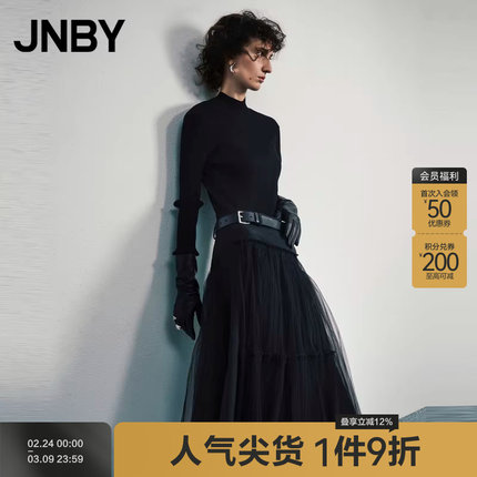 JNBY/江南布衣折扣秋冬半身裙蕾丝拼接设计感不规则休闲中长款女