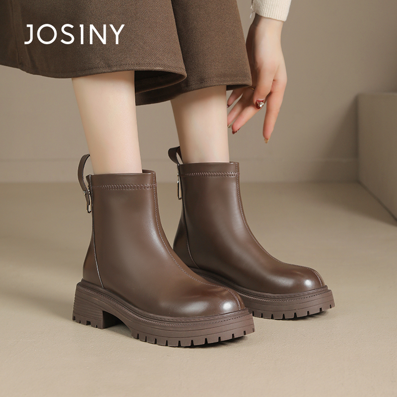 卓诗尼女靴冬季撤柜正品摩登时尚切尔西靴圆头后跟环形拉环百搭潮