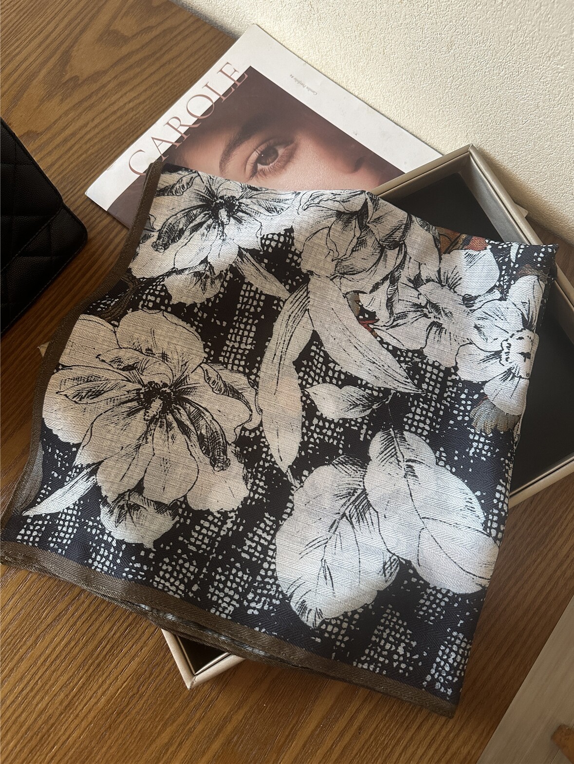 2025韩版春秋复古花卉小方巾夏季防晒小丝巾头巾女装饰领巾发带