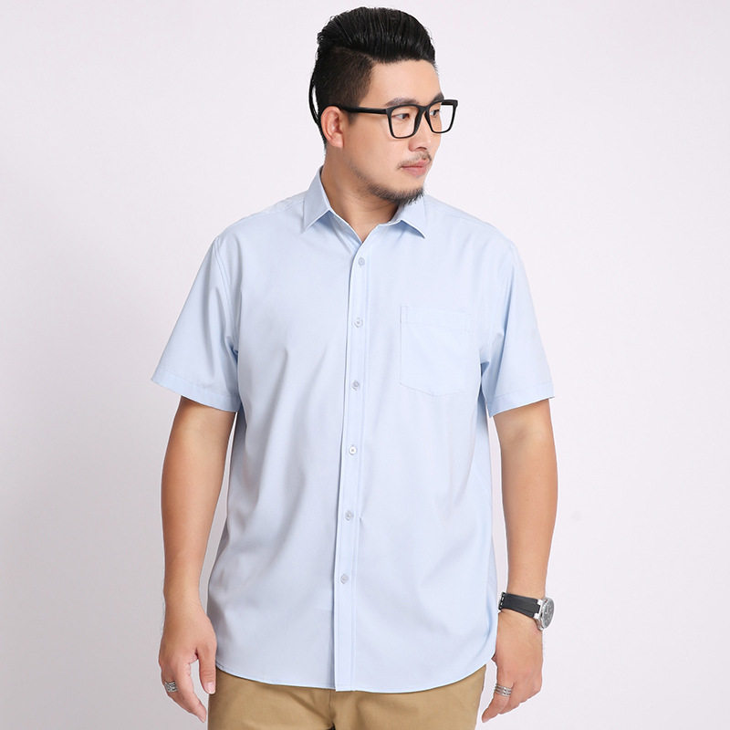 特大400斤胖子加肥加大码男装短袖衬衫薄款肥佬青年中老年人纯色