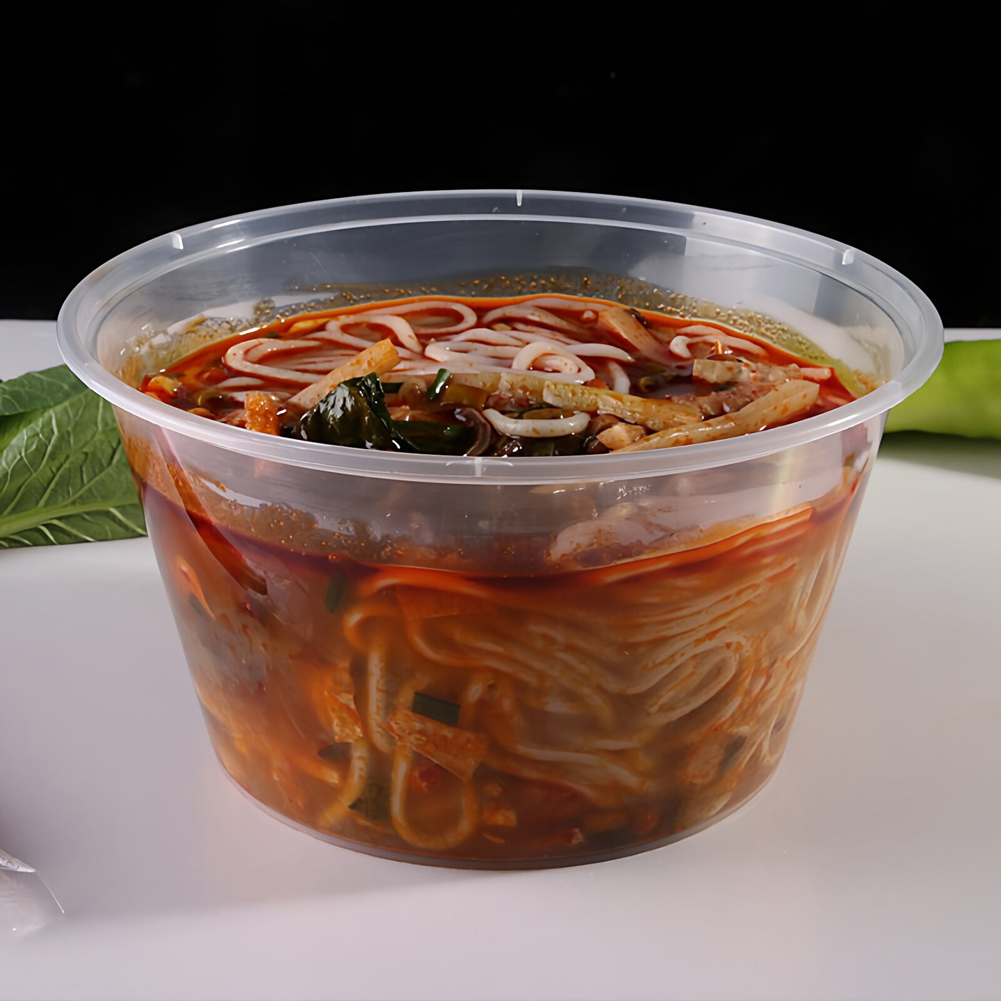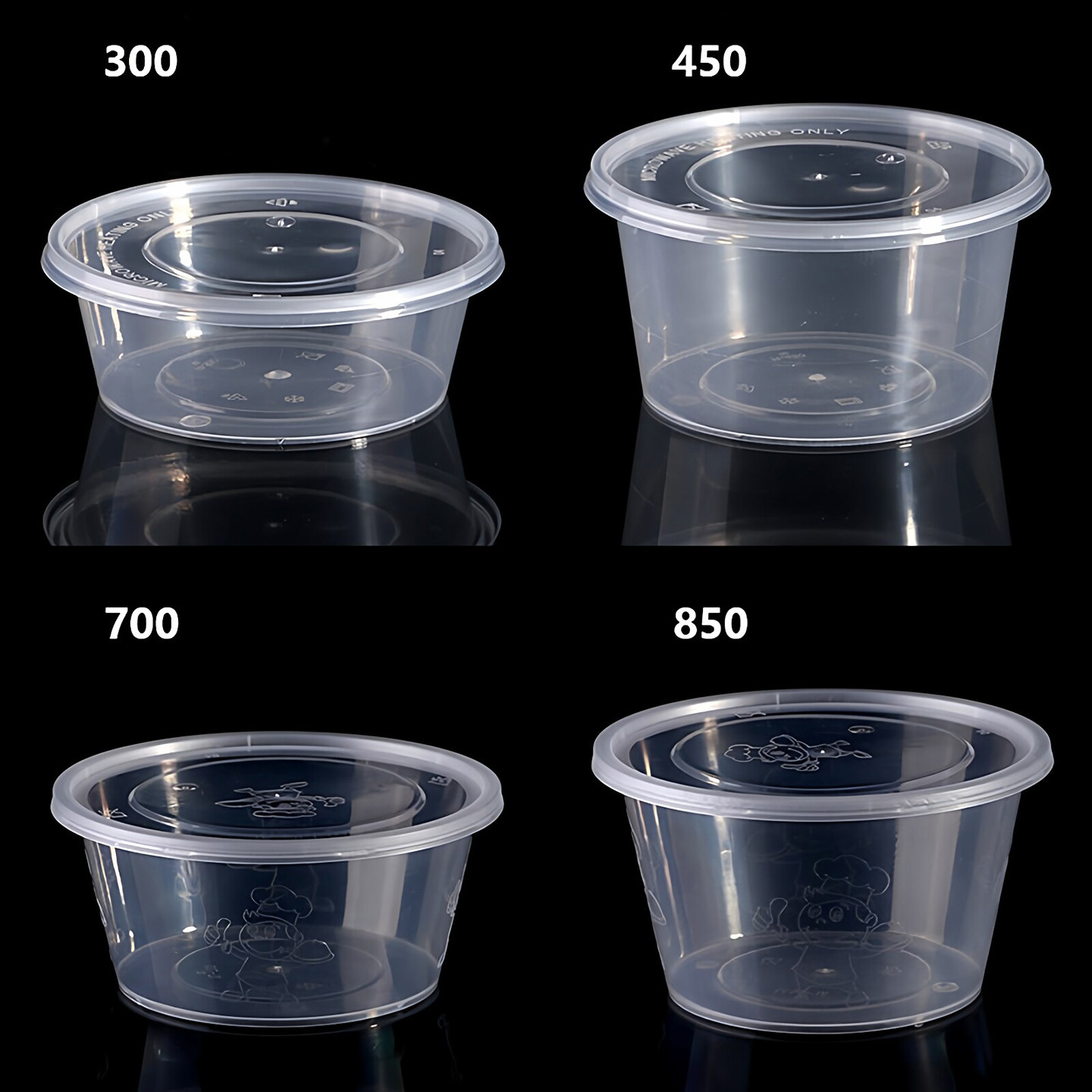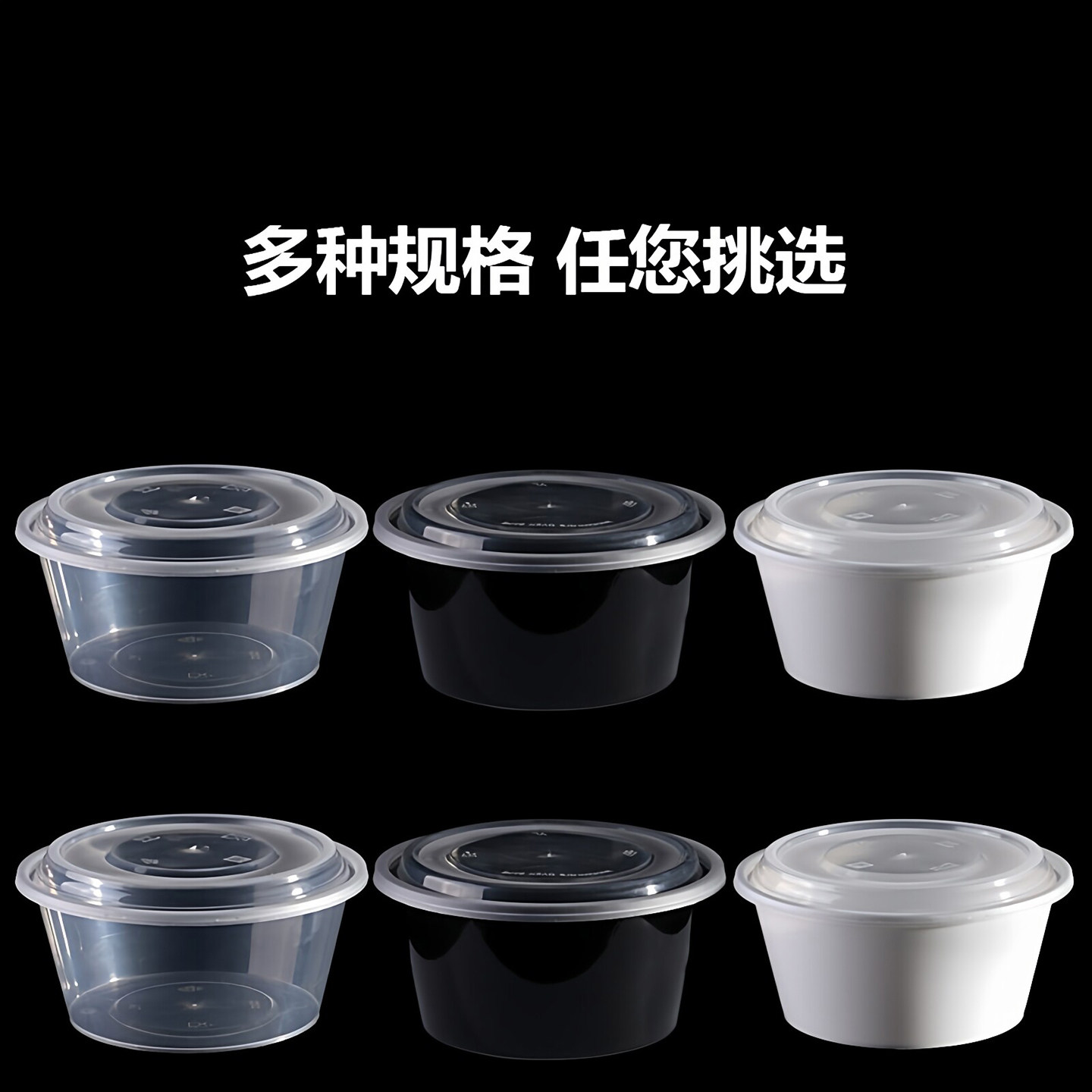 一次性餐盒圆形打包盒圆盒饭盒加厚食品级塑料外卖冰粉碗带盖商用