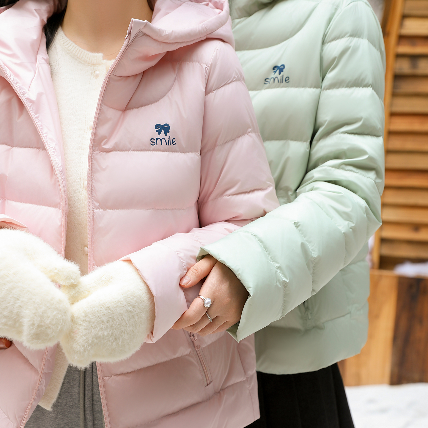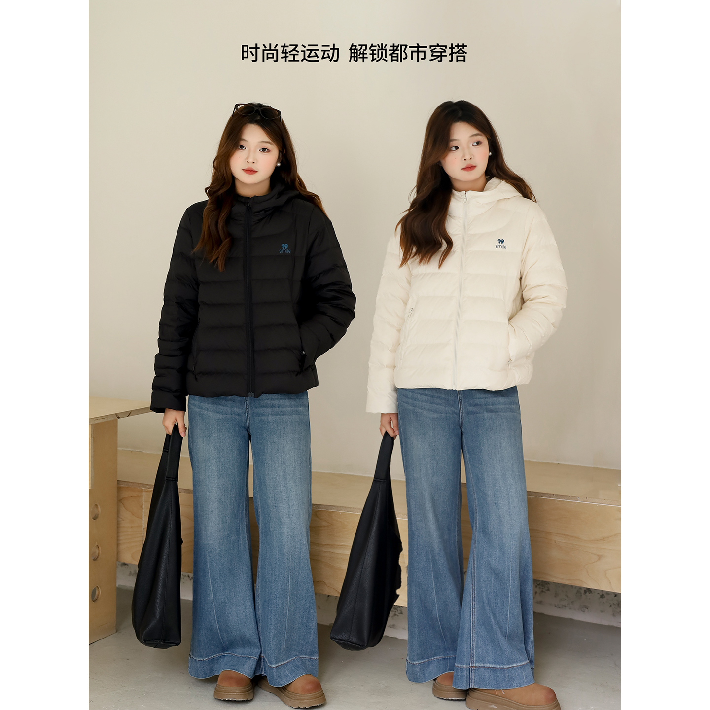 DM100大码百分百女装微胖mm冬季正肩连帽短款轻薄三防排骨羽绒服