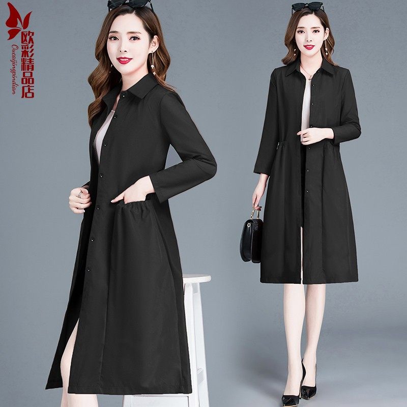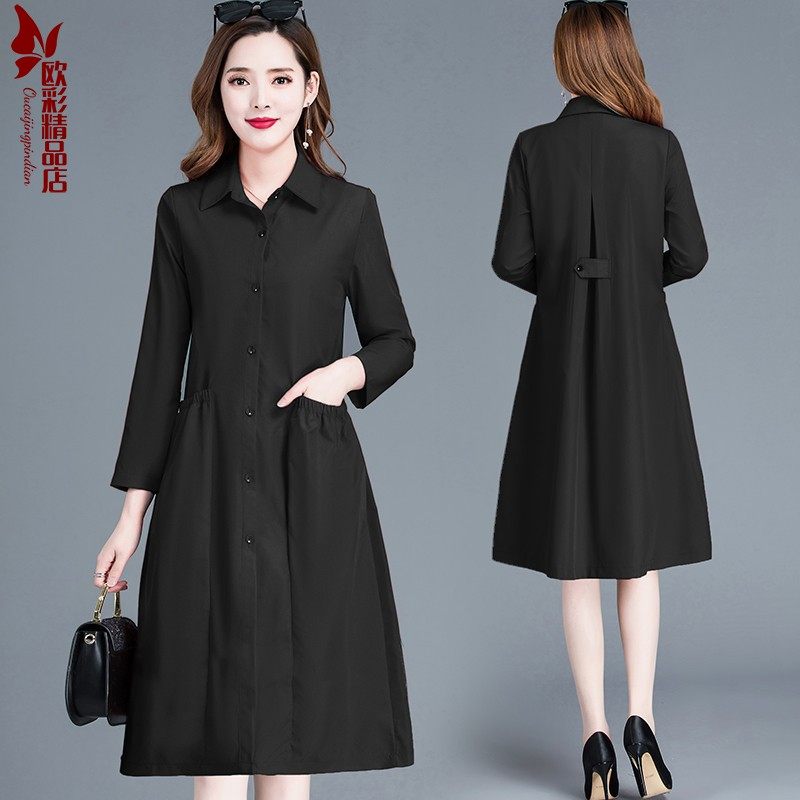 中老年女装妈妈装中长款韩版宽松显瘦薄款风衣衬衫领气质外套秋装