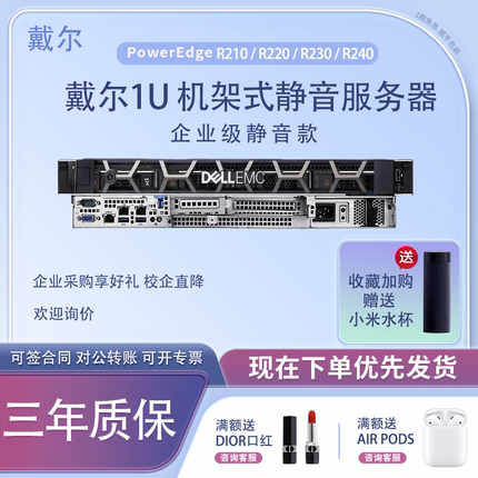 Dell戴尔R210 R220 R230 R240服务器1U机架式财务ERP数据存储主机