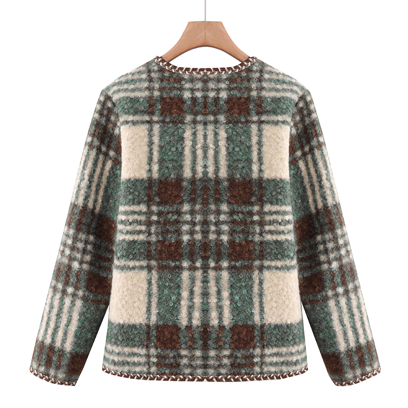 胖妈妈秋冬新款小香风圆领格子毛呢外套女宽松显瘦休闲上衣呢大衣