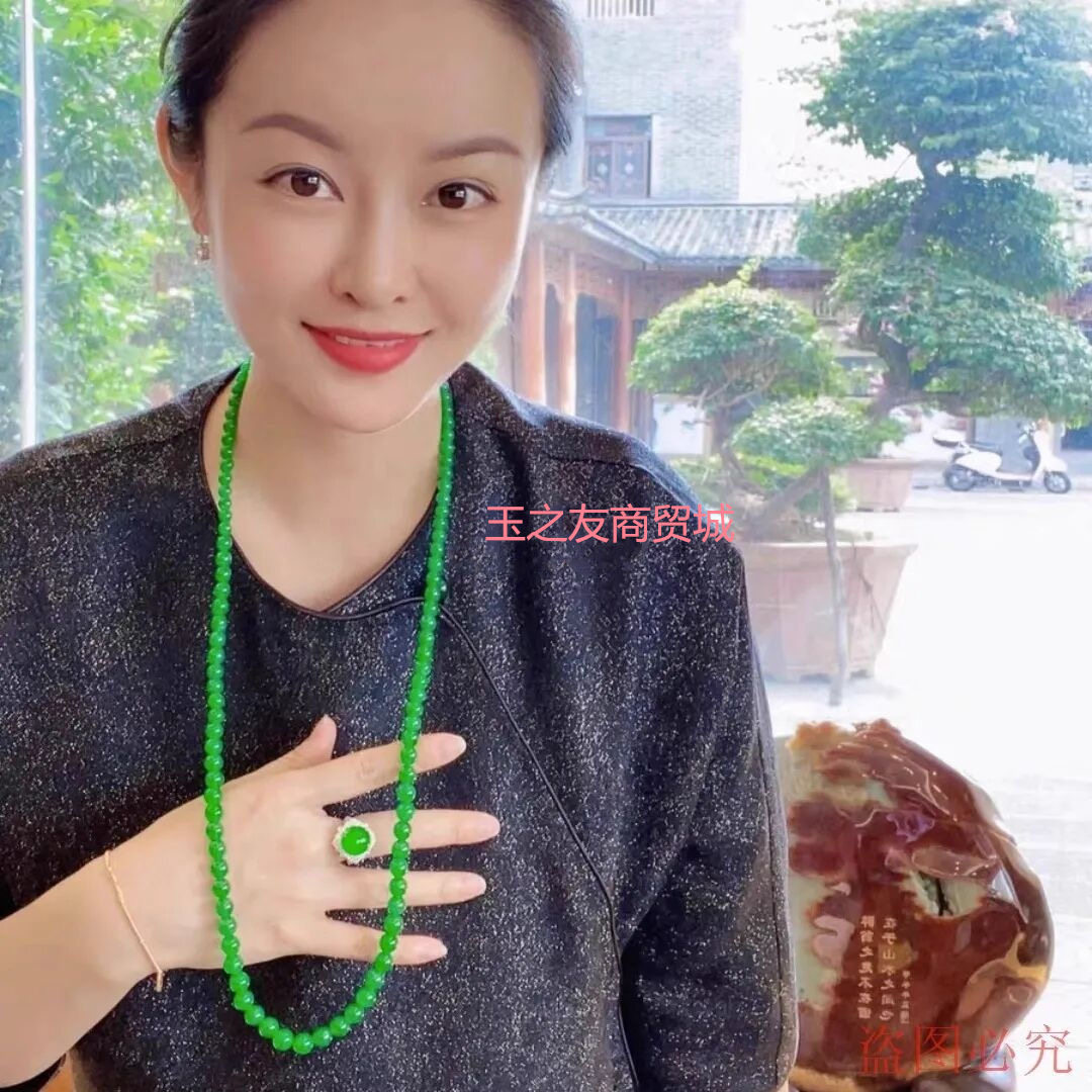 带证书天然缅甸翡翠满阳绿珠链108颗玉石圆珠项链贵气长款毛衣链