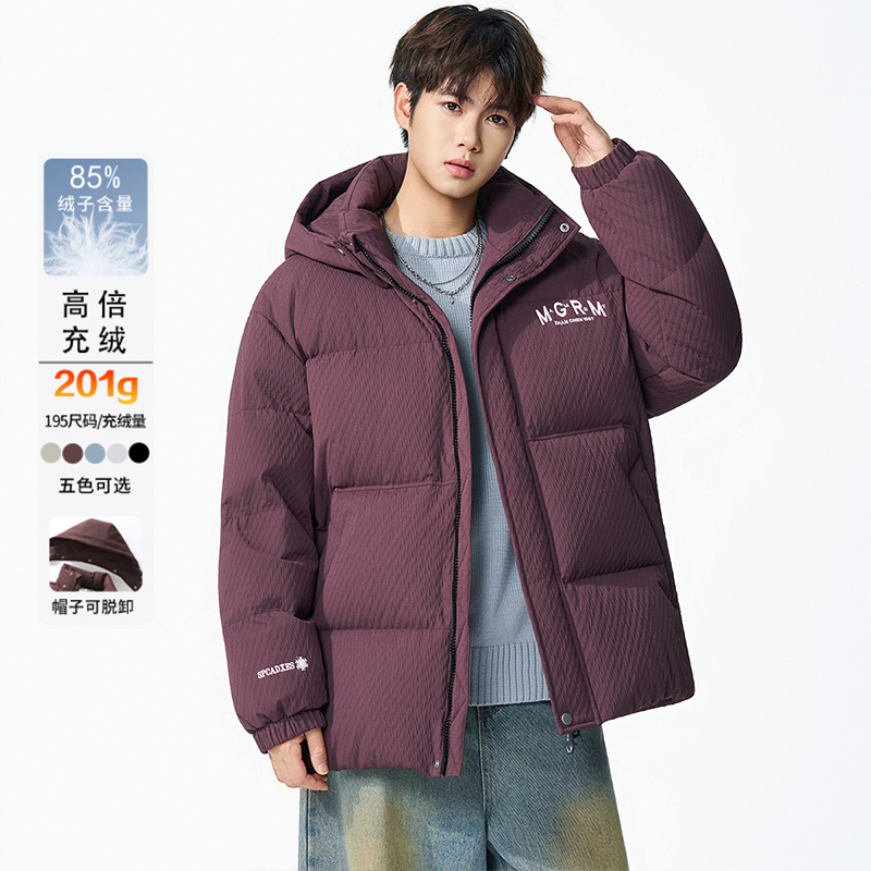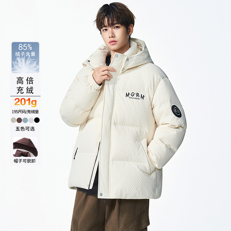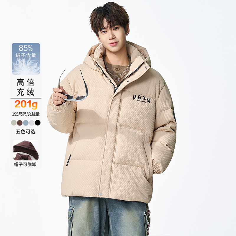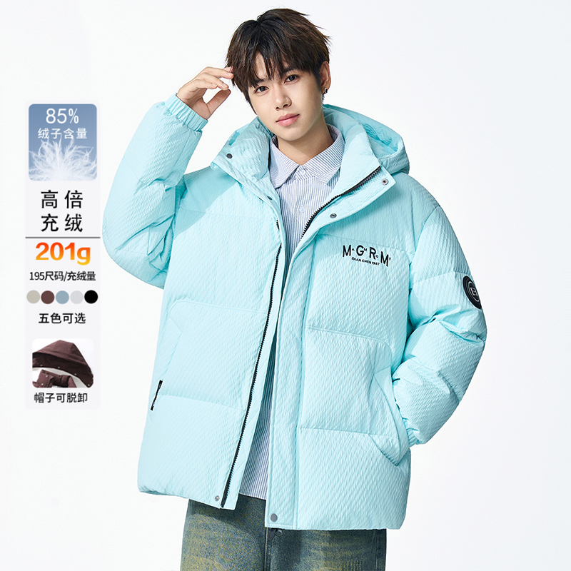 冬季重磅新款羽绒服男款青少年肌理感连帽防寒男生白鸭羽绒服以純