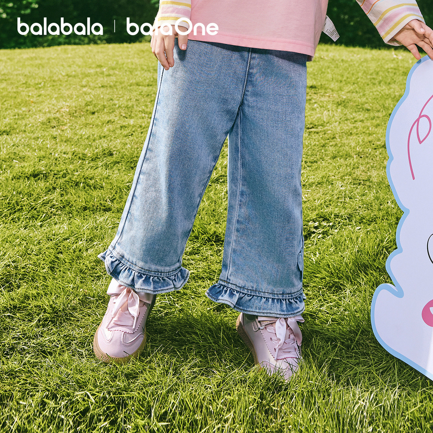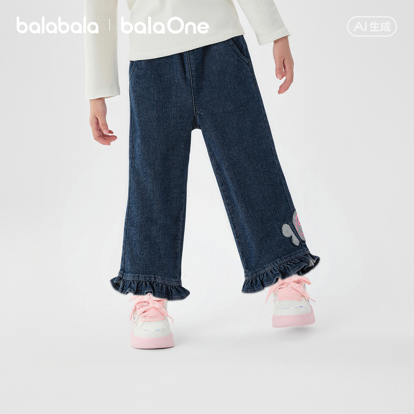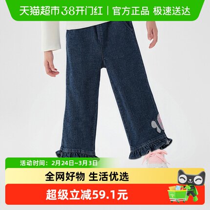 【balaOne】巴拉巴拉童装儿童长裤女童2026新款春秋装直筒牛仔裤