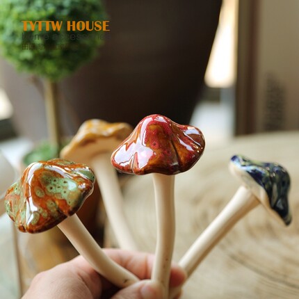 户外花园阳台花盆装饰品庭院摆件可爱陶瓷仿真蘑菇草坪装饰工艺品