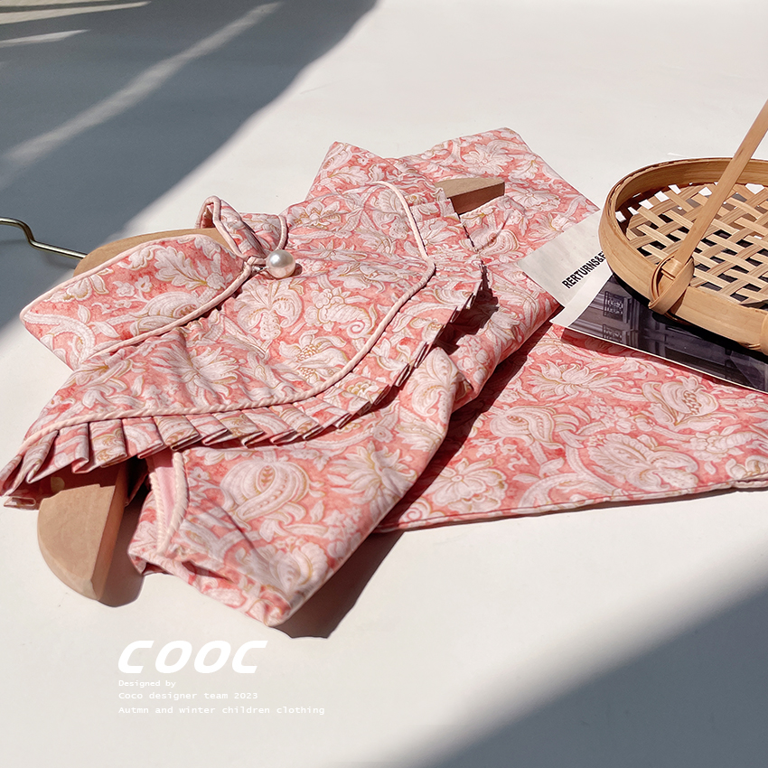 2023夏季新款粉色图腾无袖旗袍新中式连衣裙小女孩改良中国风裙子