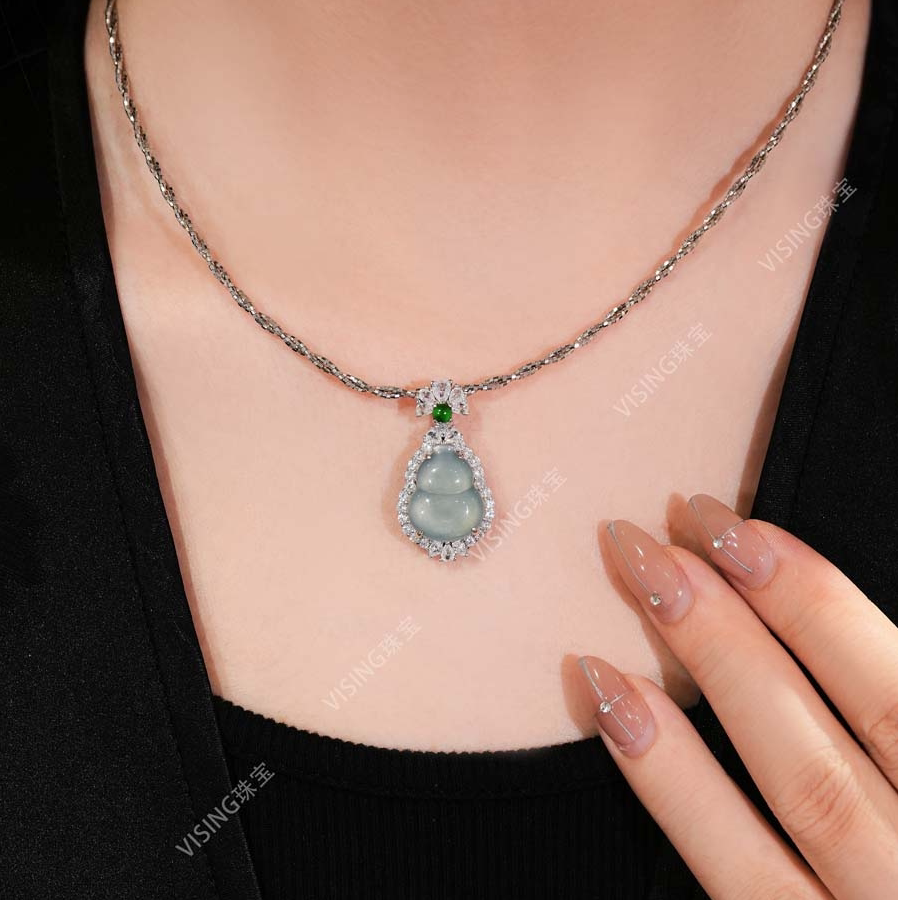 VISING珠宝天然A货冰种翡翠蓝水小葫芦吊坠项链国风新中式配饰