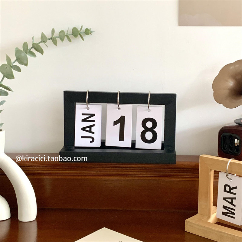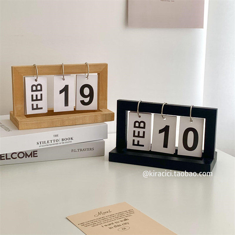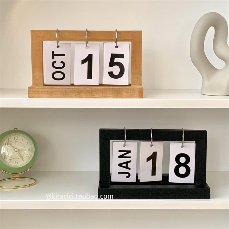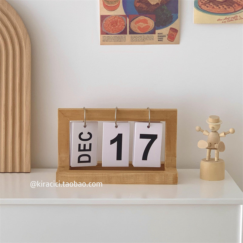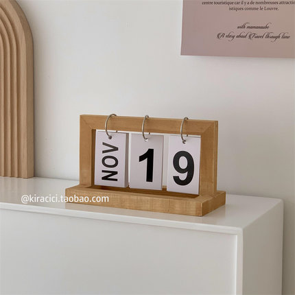 创意木质翻页e日历客厅桌面装饰2023-2024年台历ins木制万年历摆