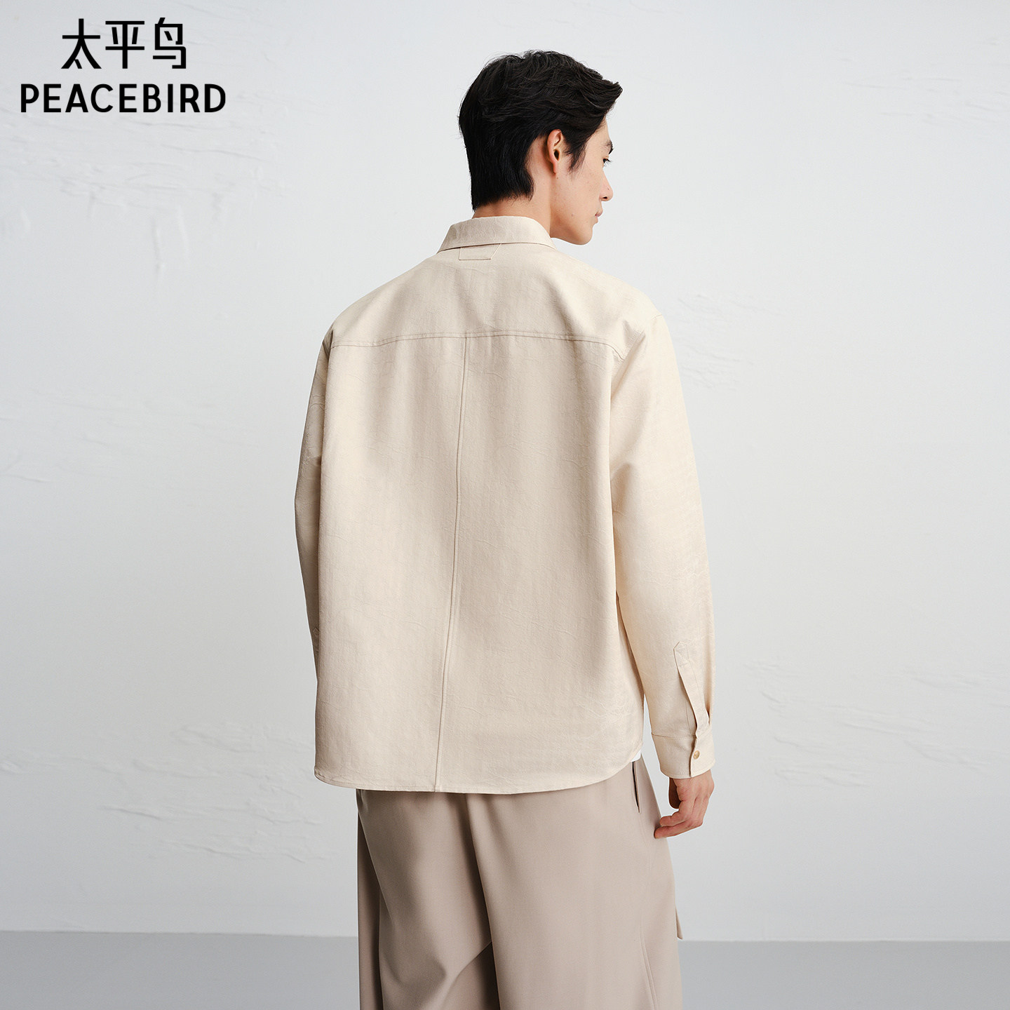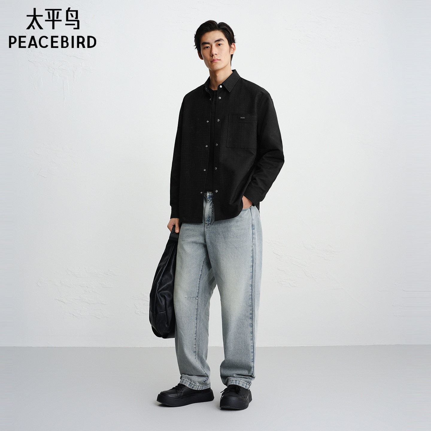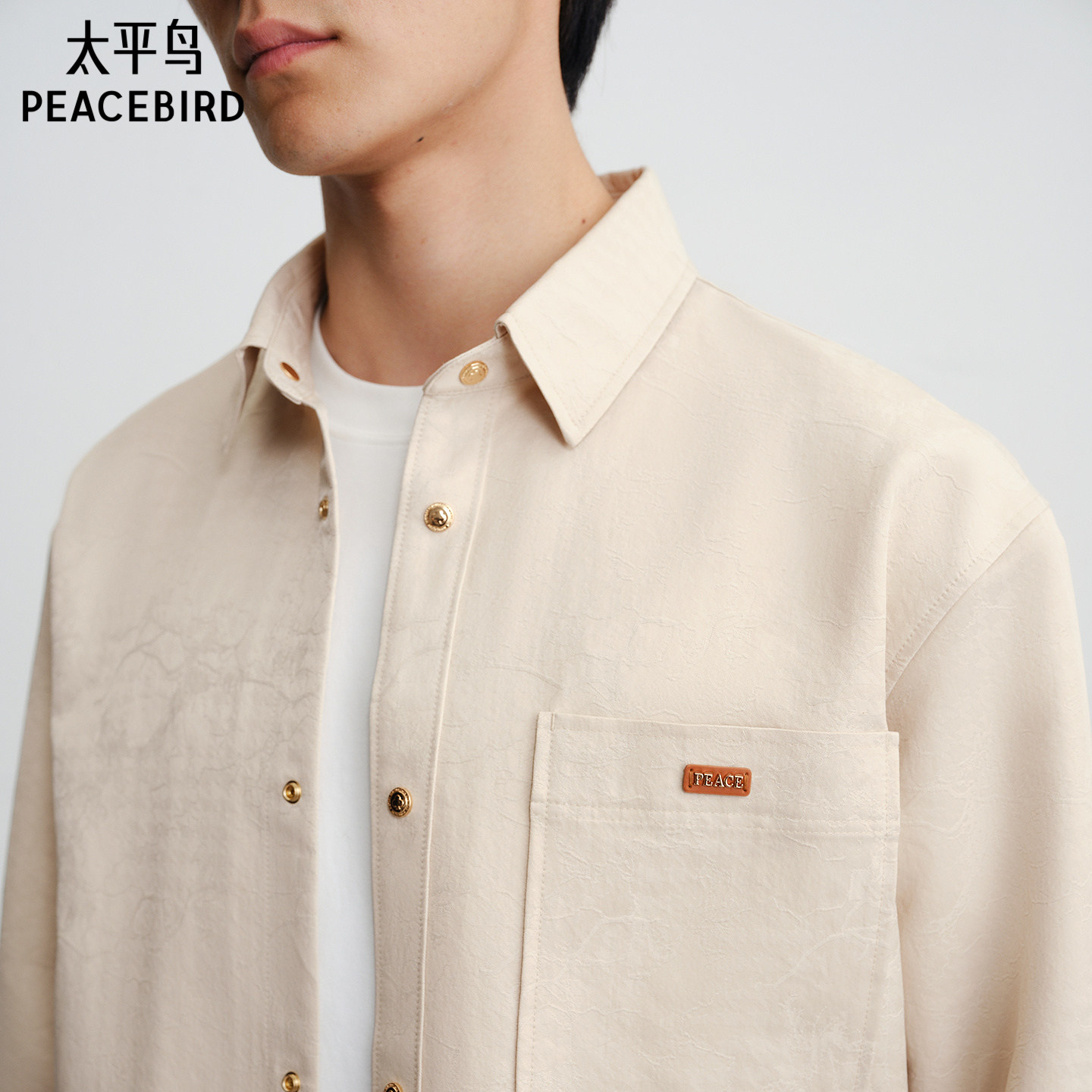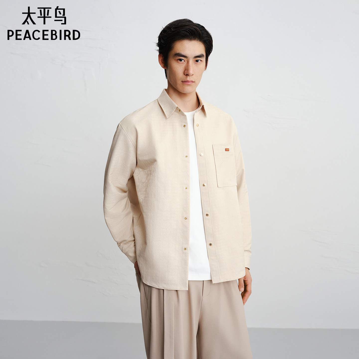 太平鸟男装 休闲衬衫2026春季新款肌理提花时尚衬衫外穿式衬衣潮
