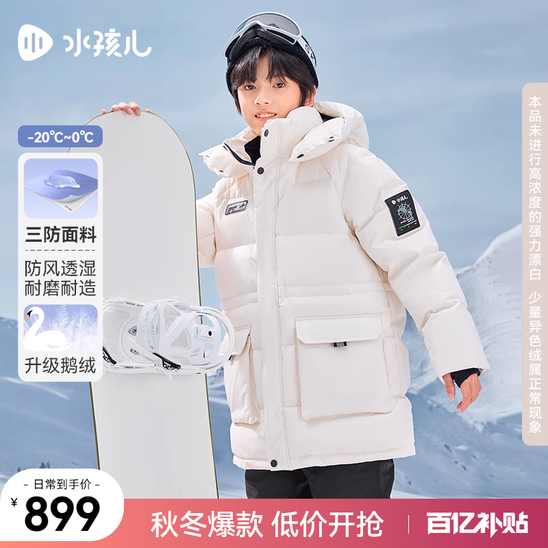 【极寒系列】水孩儿儿童鹅绒服中长款2025秋冬三防亲子外套羽绒服