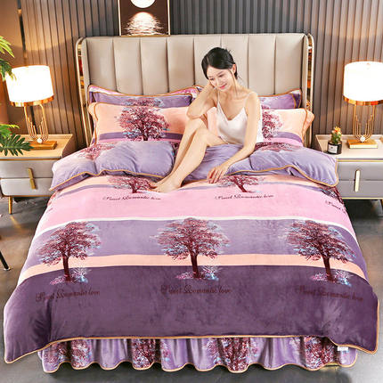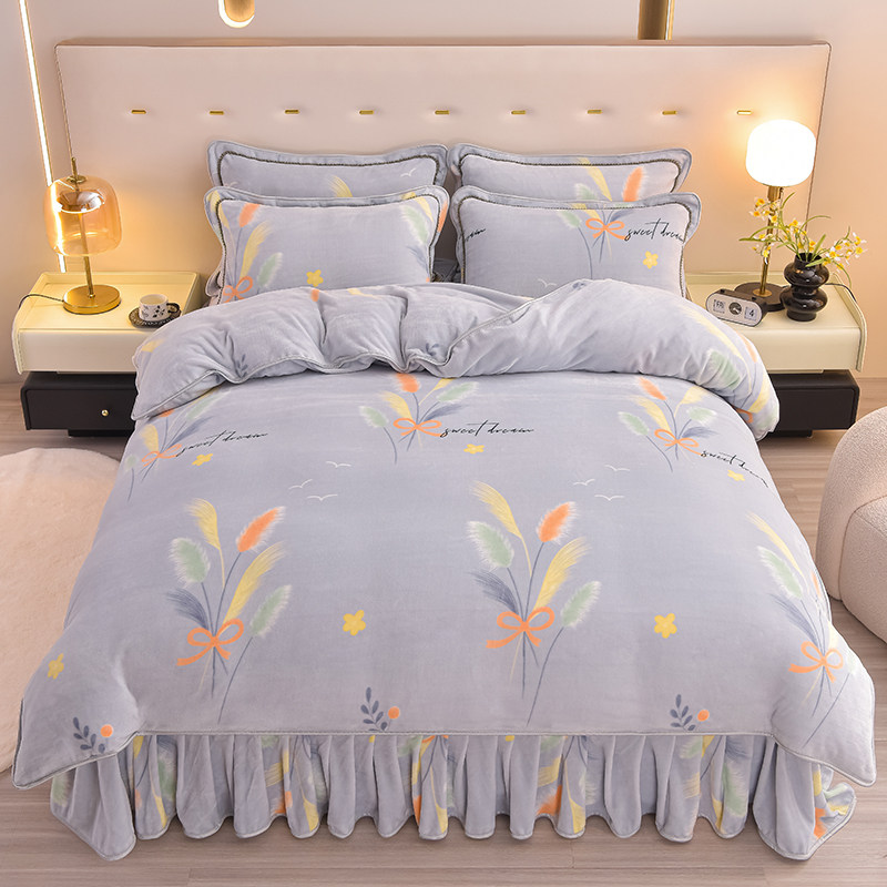 冬季加厚牛奶绒床上四件套双面加绒法兰绒珊瑚绒被套毛绒保暖床单