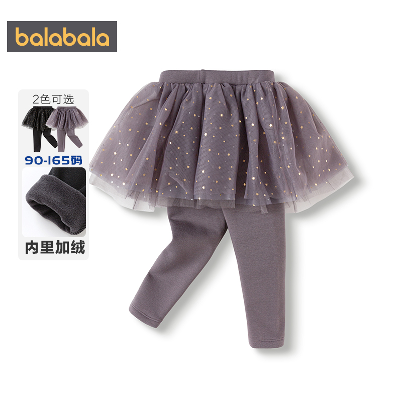 巴拉巴拉女童加绒打底裤中大童宝宝假两件裙裤秋冬新款儿童裤子厚