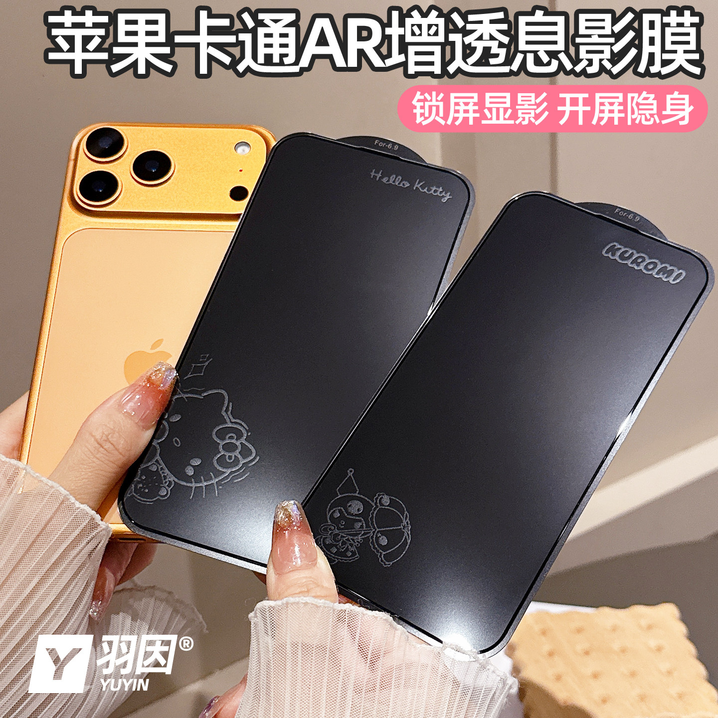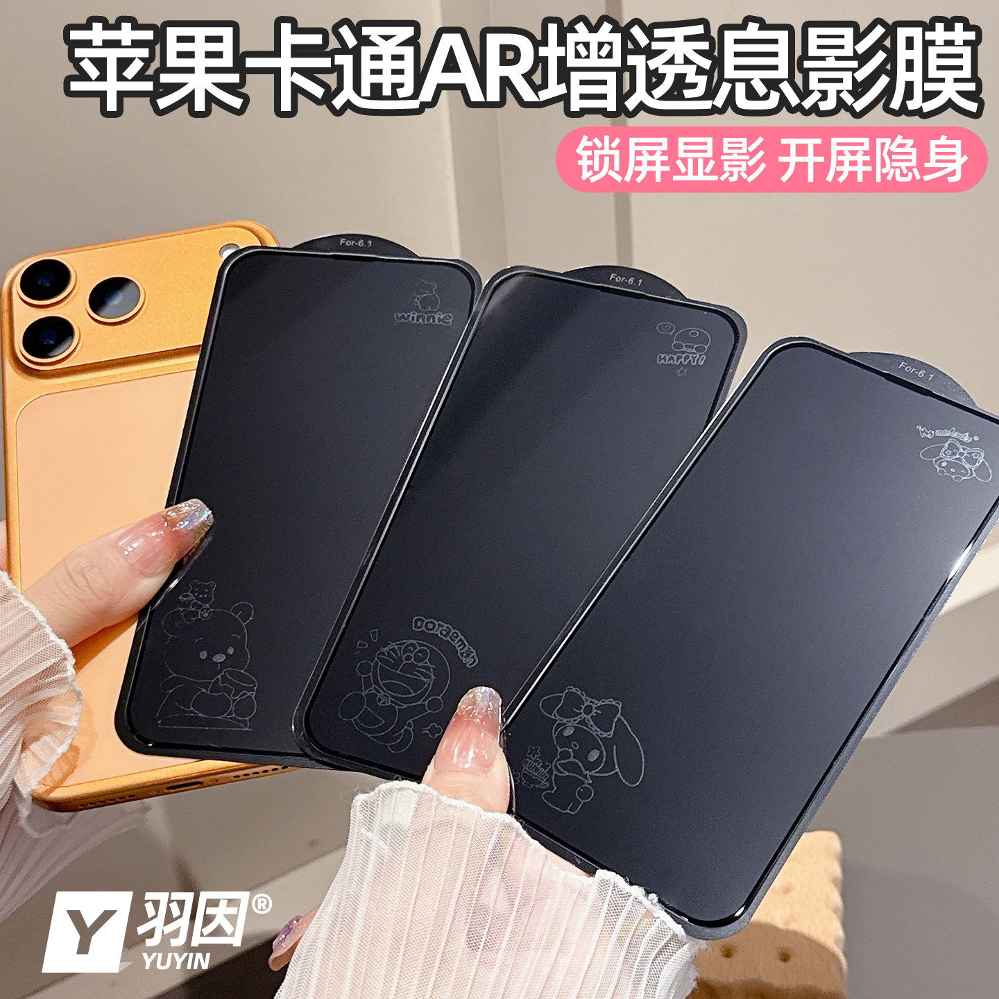 息影膜适用苹果17ProMax卡通钢化玻璃膜17pro高清防爆16promax隐形图案15Pro增透彩膜14Plus全覆盖13pro防爆