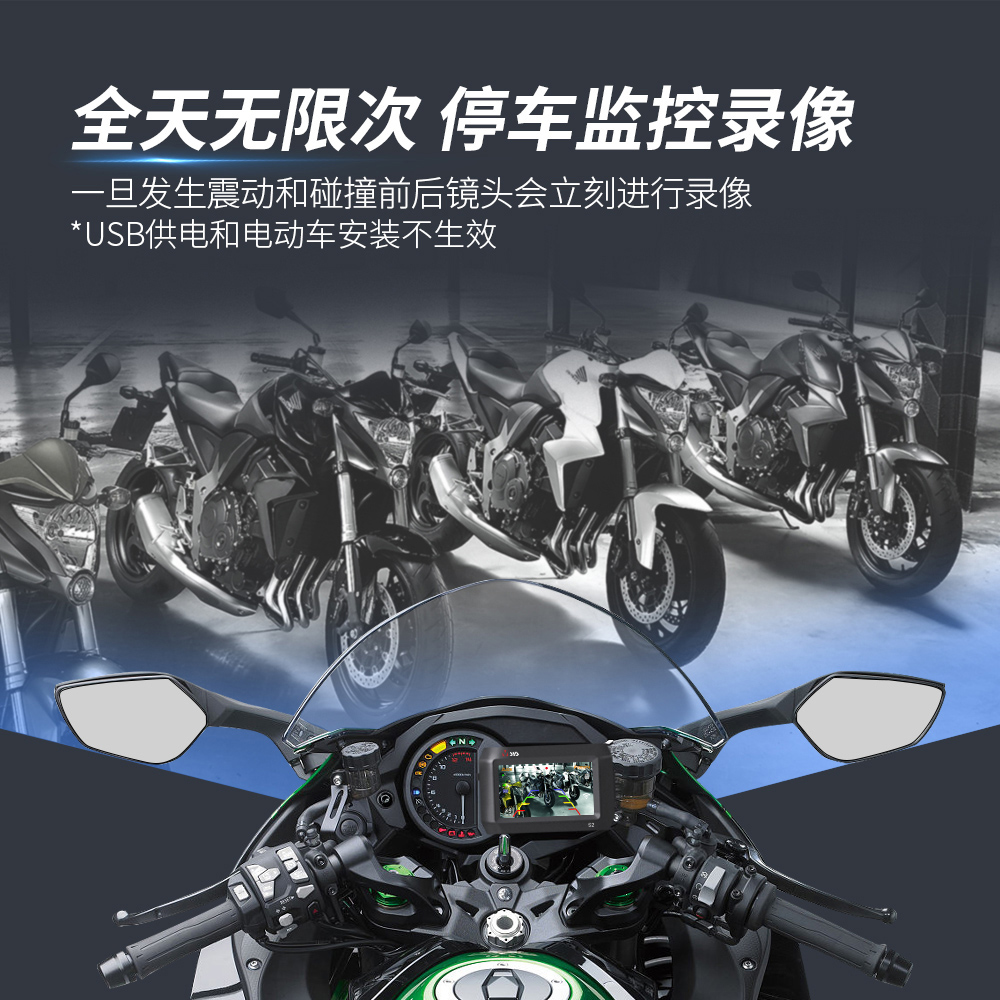 唯赛思通 摩托车行车记录仪双镜头3寸屏防水防抖胎压停车监控S2