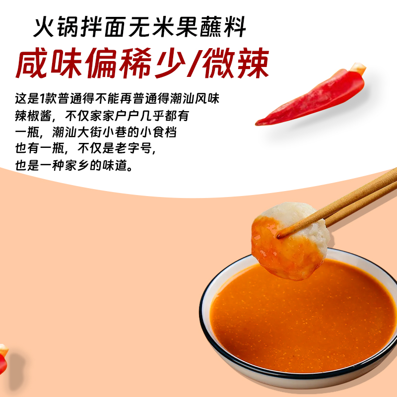 潮味优信辣椒酱2瓶潮汕无米粿咸水辣椒汁蚝烙蘸酱沙县小吃调味料