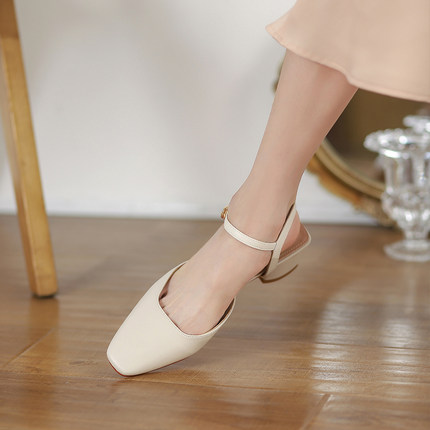 包头凉鞋女2025年夏季新款粗跟方头舒适单鞋中跟百搭鞋子时尚女鞋