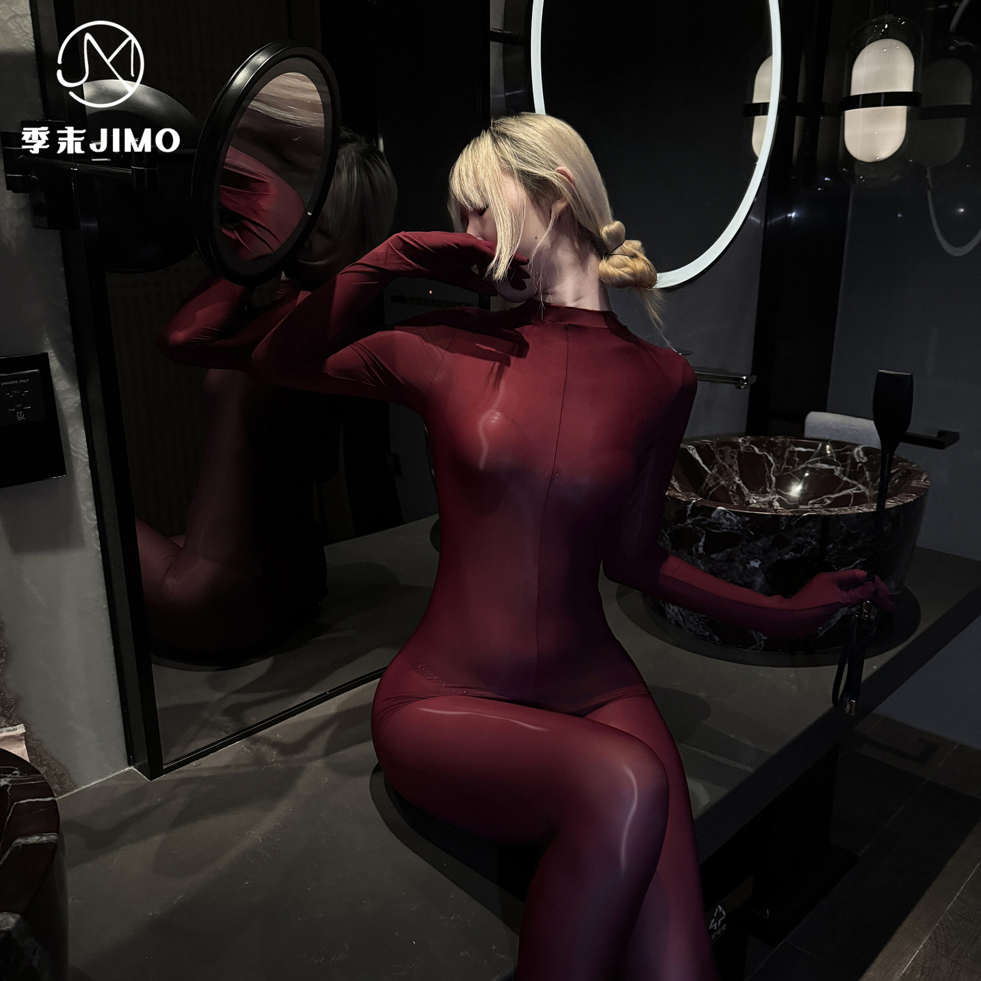 季末性感油亮全包连体衣丝滑裸感长袖紧身衣透视情趣内衣紧身衣